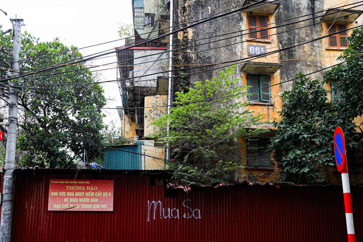 Xung quanh đơn nguyên 3 khu tập thể C8 Giảng Võ đã được quây rào tôn và lắp đặt biển cảnh báo nguy hiểm.