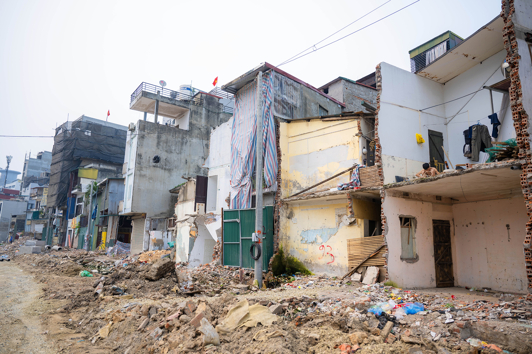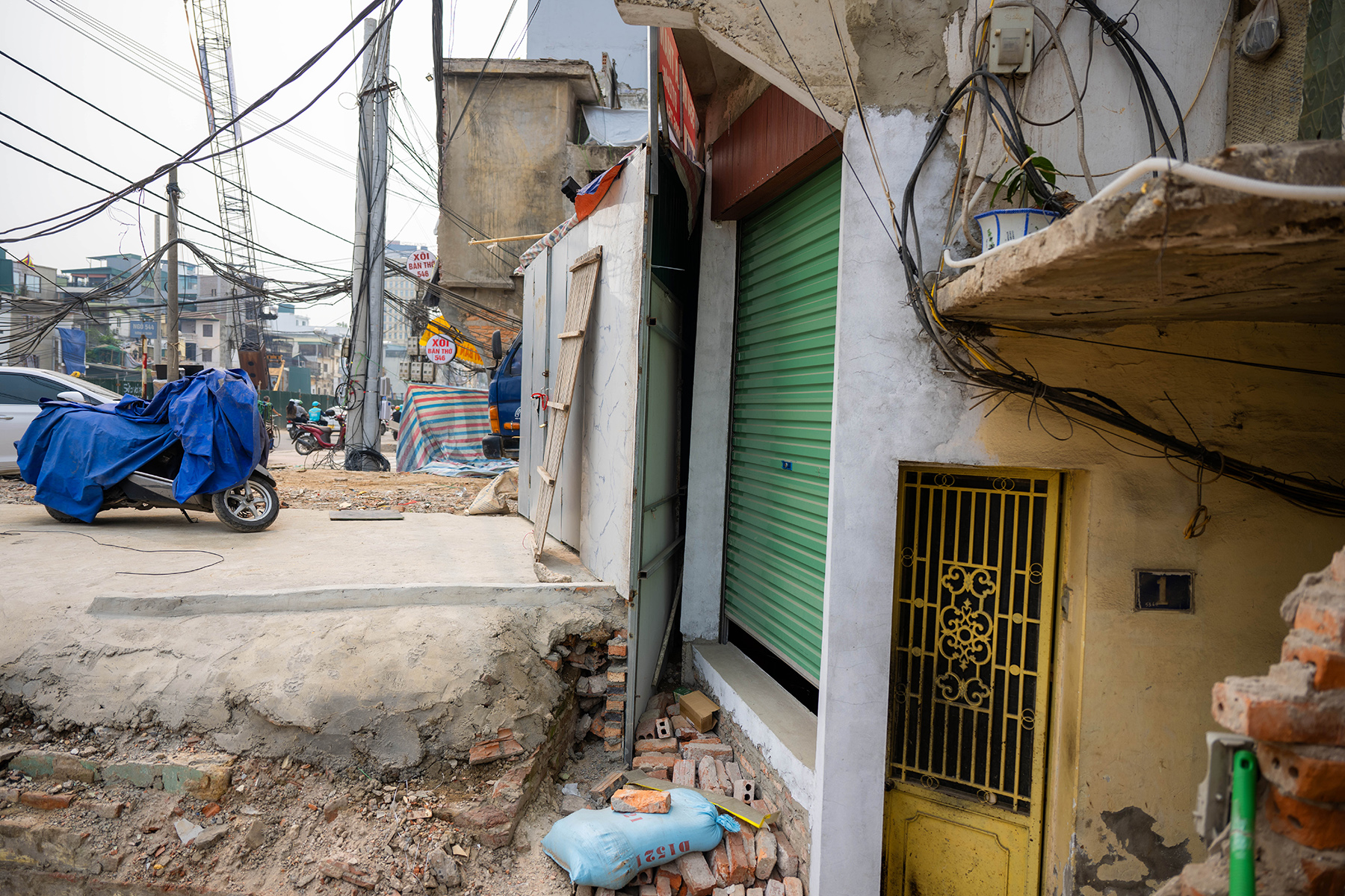 Tận dụng những phần đất còn lại sau giải phóng mặt bằng, nhiều hộ dân dựng nhà để ở hoặc kinh doanh, dù hình dạng thửa đất không còn phù hợp cho xây dựng.