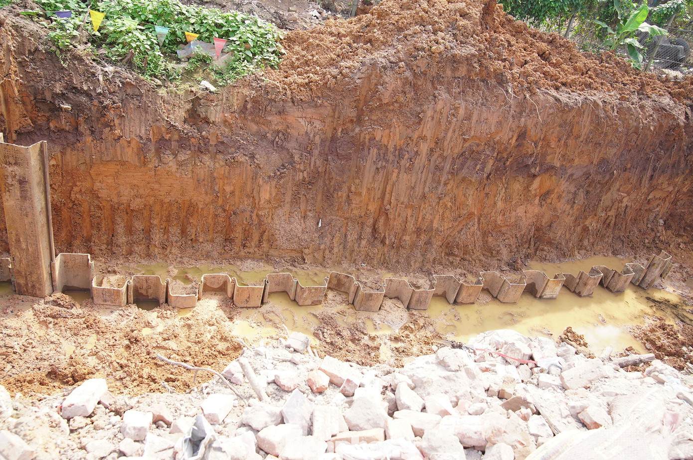 Đến nay, nhà thầu đã đổ bê tông dầm đỉnh cừ khoảng 100 m và thi công hơn 800 m trong tổng số trên 1.300 m cừ bê tông.