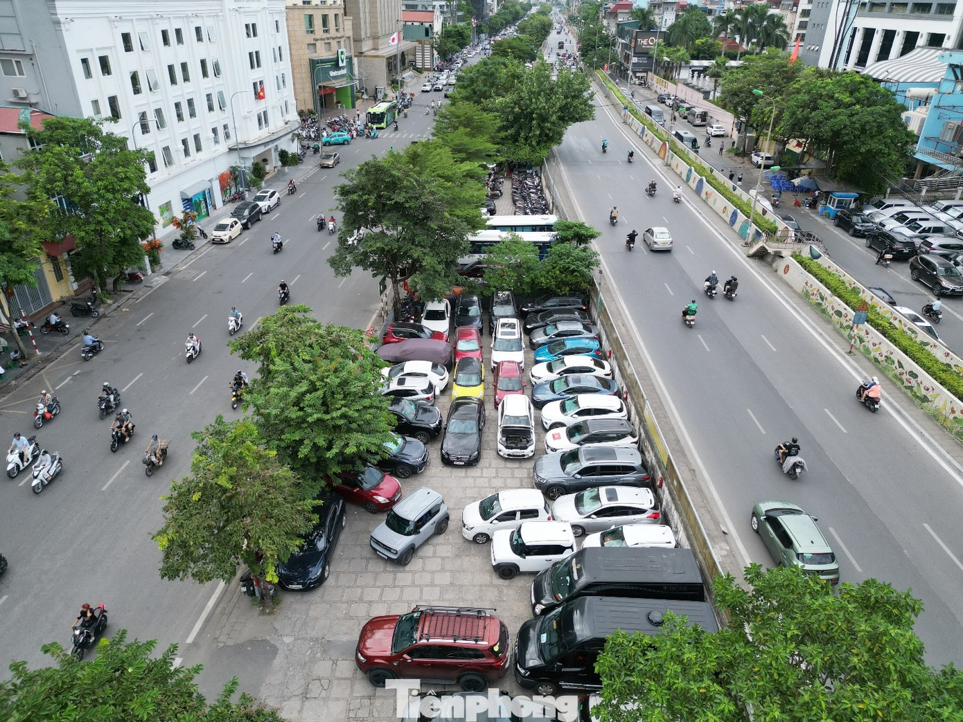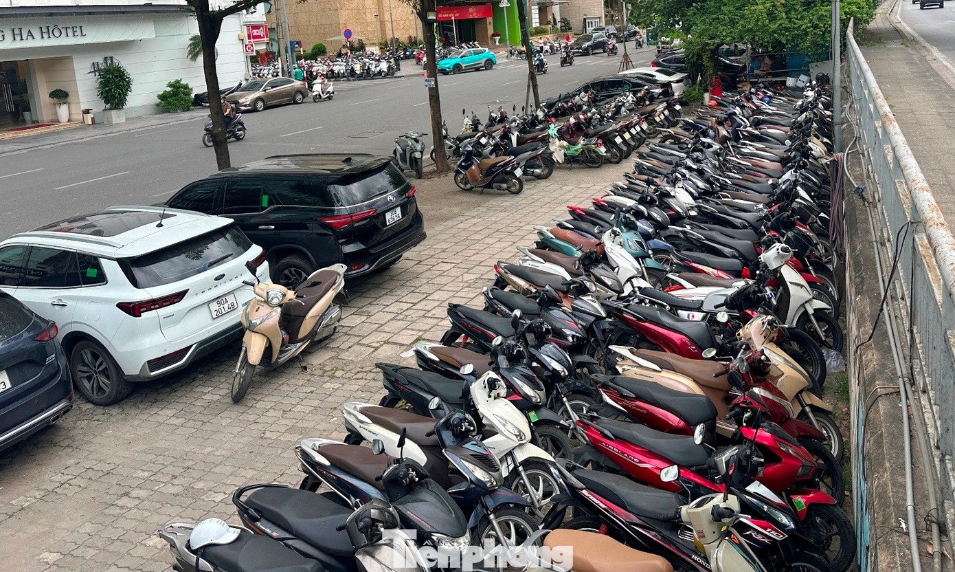 Do số lượng xe đông, nên nhiều xe đã để ra cả lòng đường, vỉa hè.