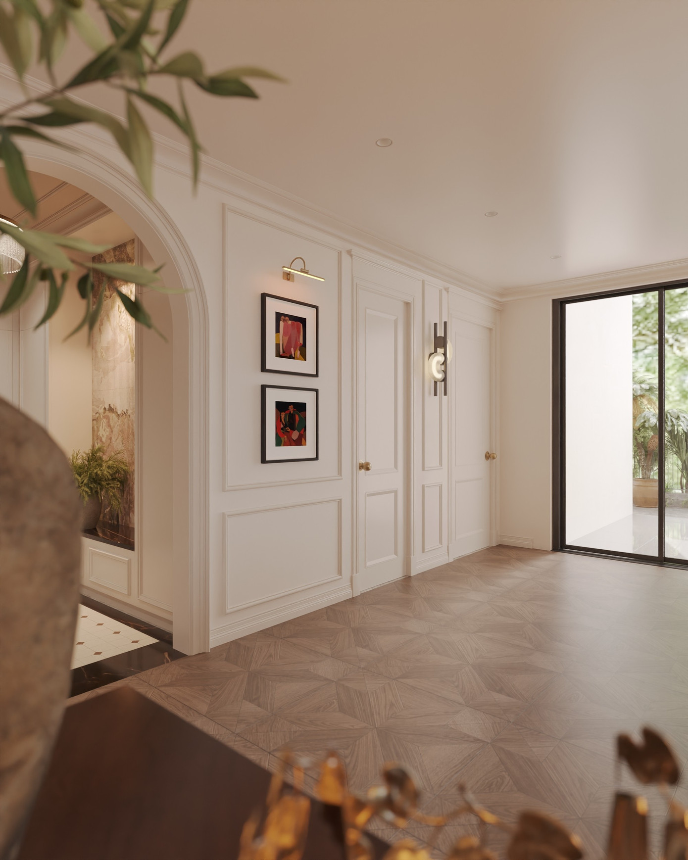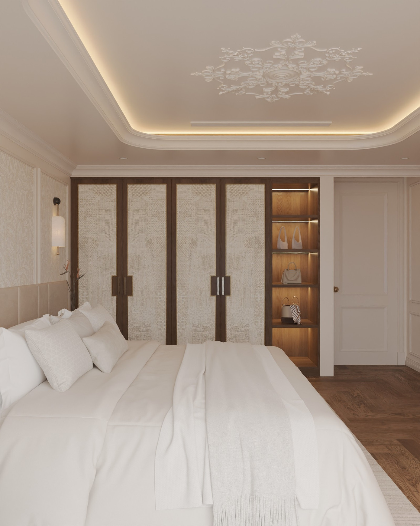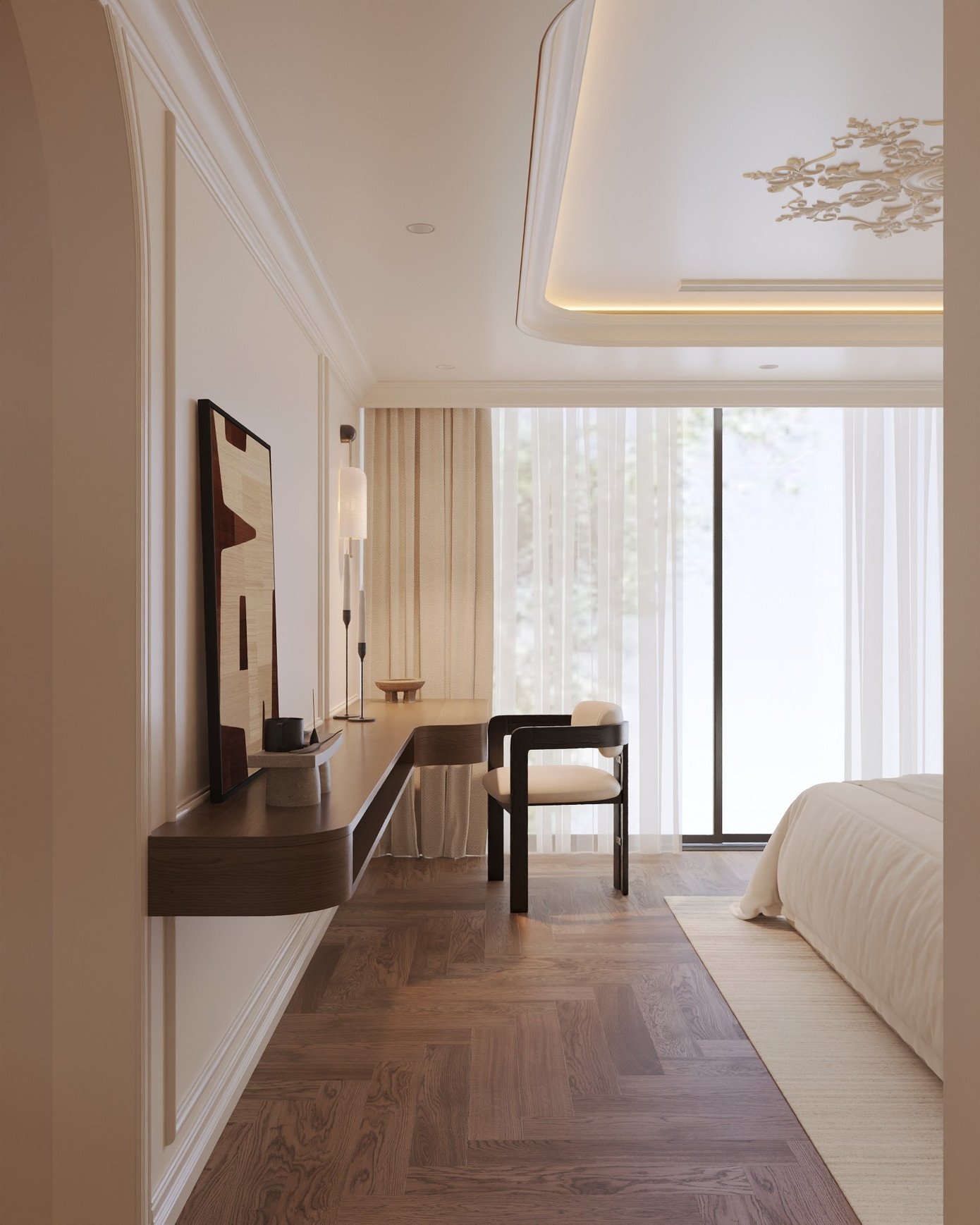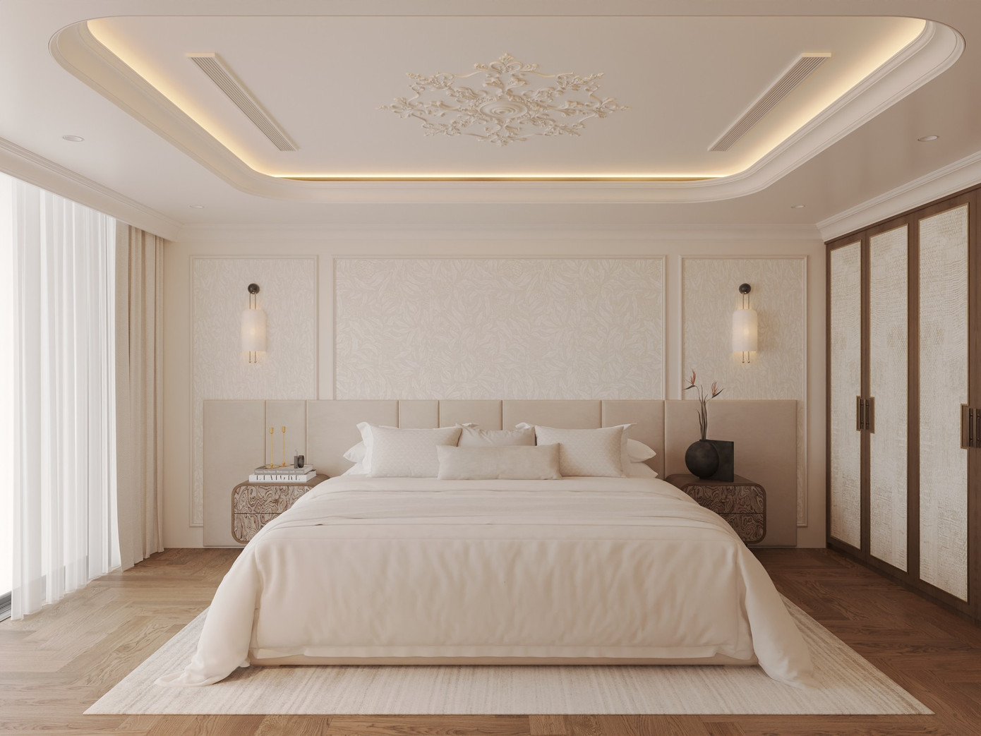 Mong muốn của gia chủ là một không gian trang trọng tinh tế nhưng vẫn cần ấm cúng thân thiện với 4 phòng ngủ: cho ông bà, vợ chồng, hai con gái và một người độc thân.
