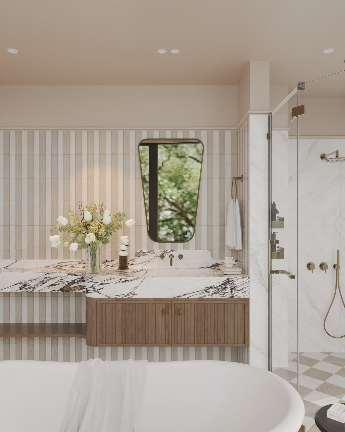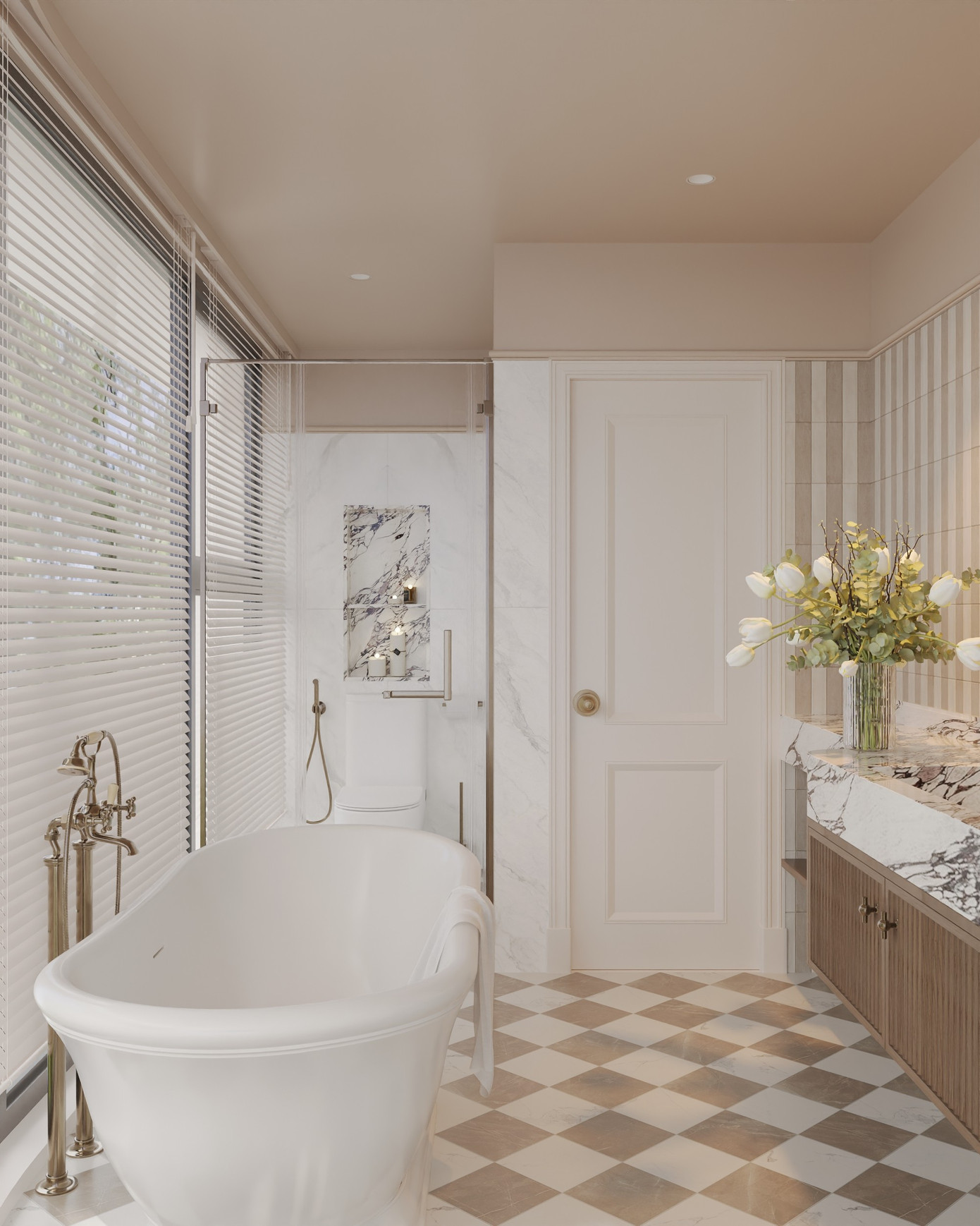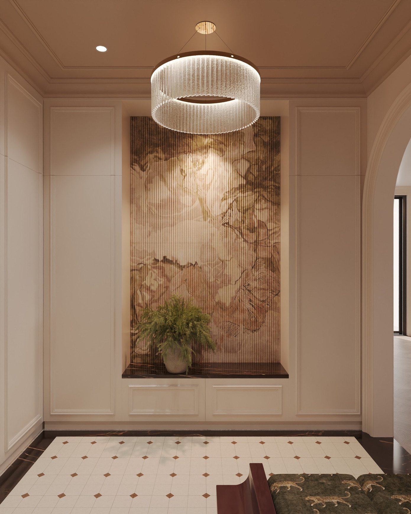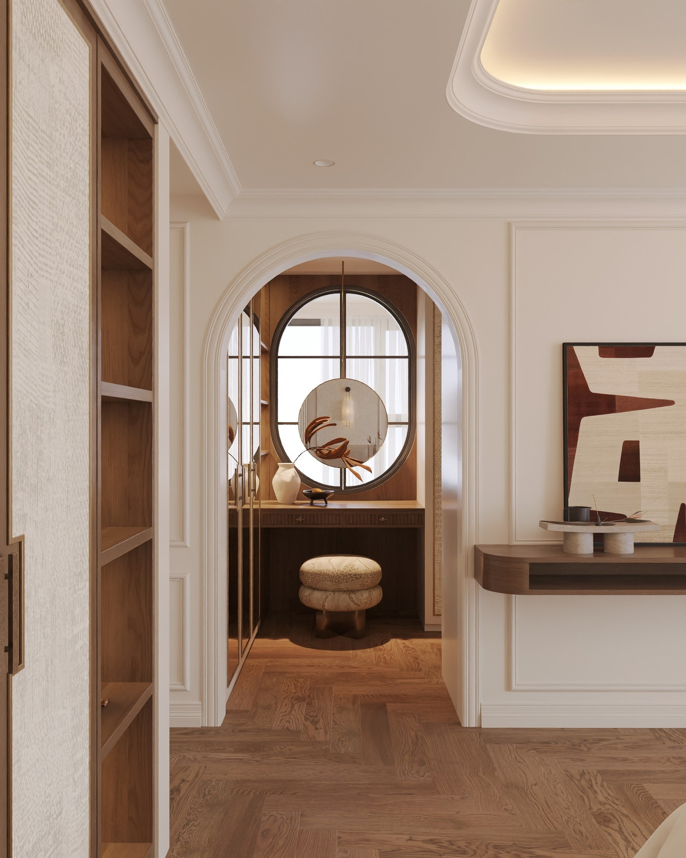 Mong muốn của gia chủ là một không gian trang trọng tinh tế nhưng vẫn cần ấm cúng thân thiện với 4 phòng ngủ: cho ông bà, vợ chồng, hai con gái và một người độc thân.