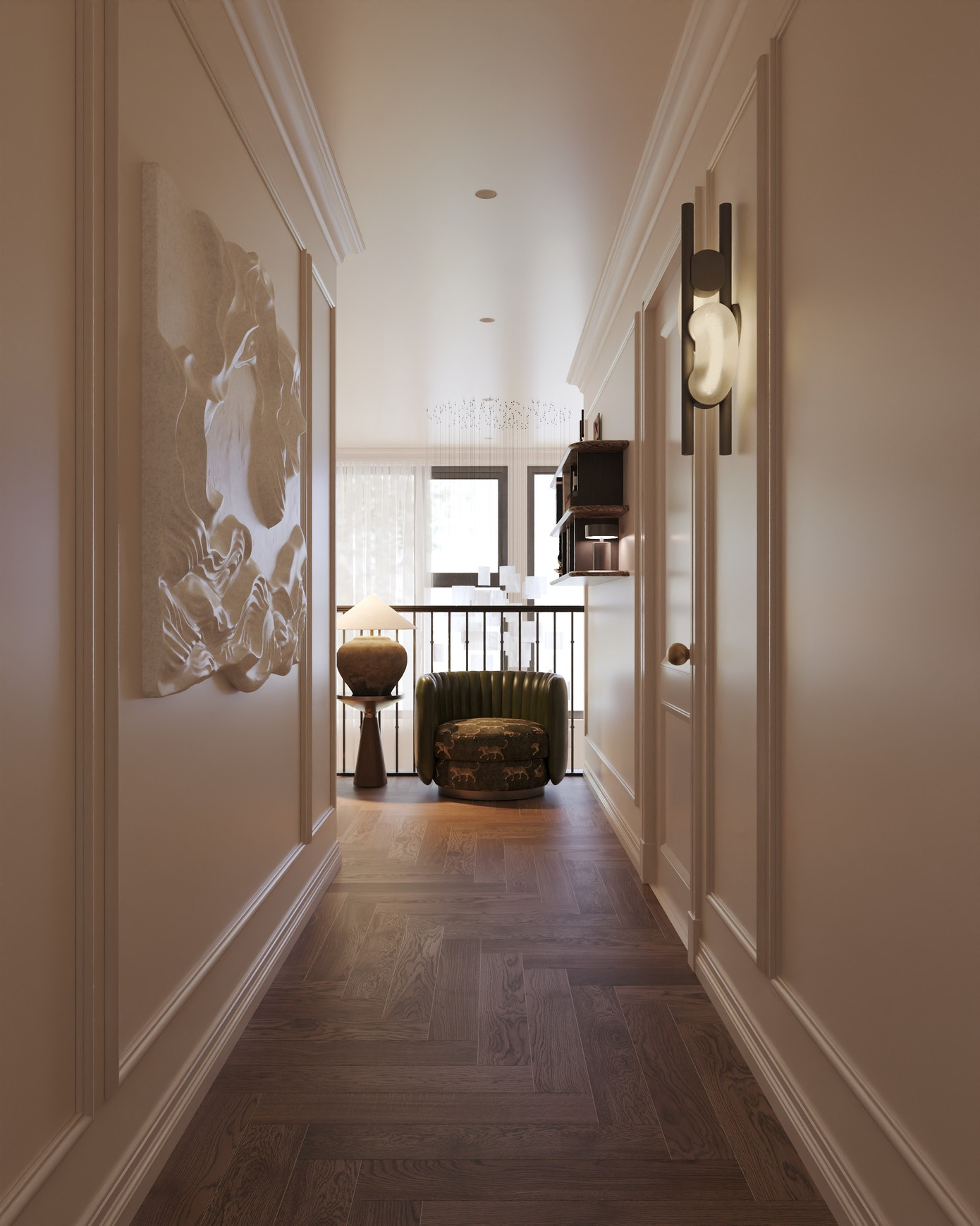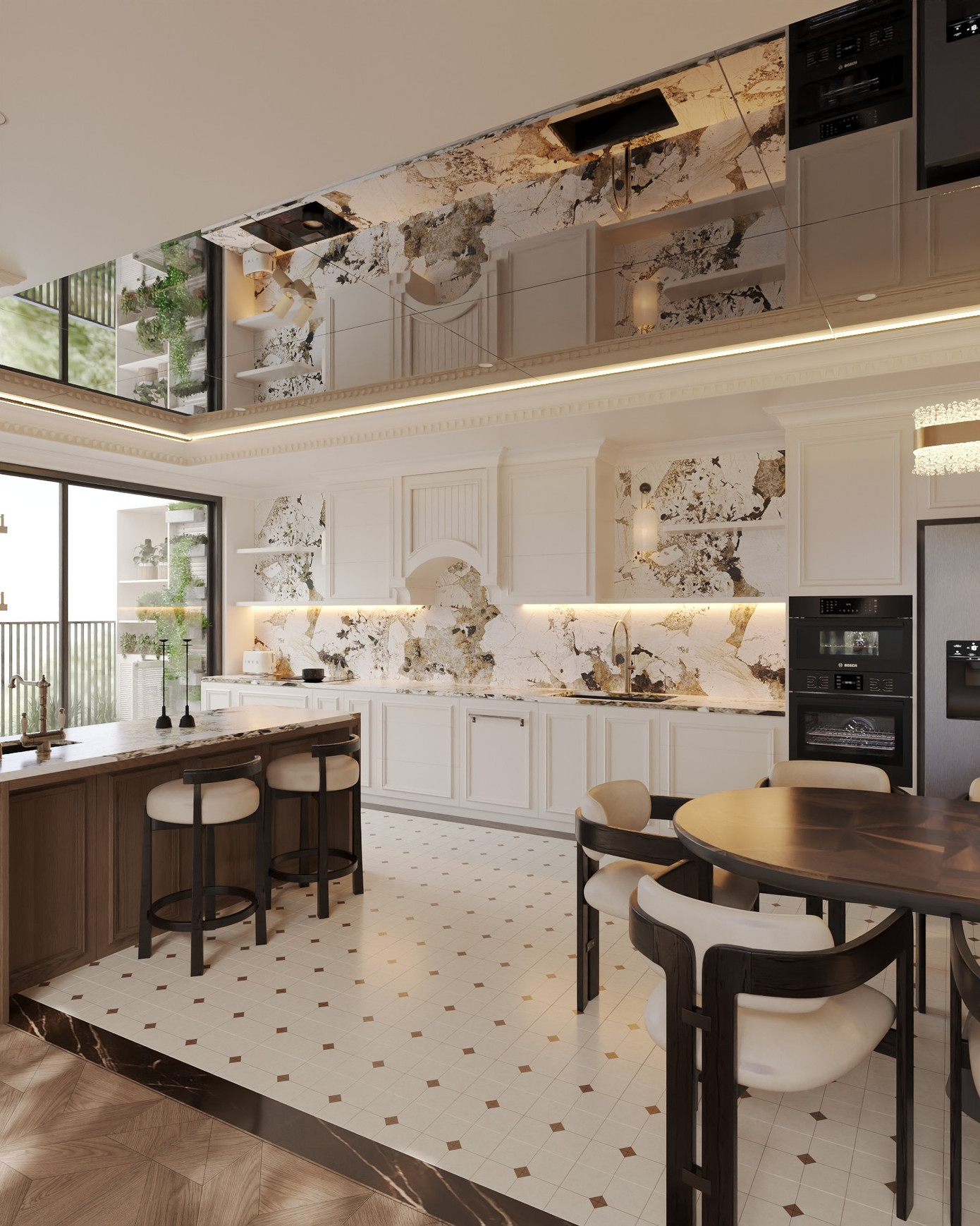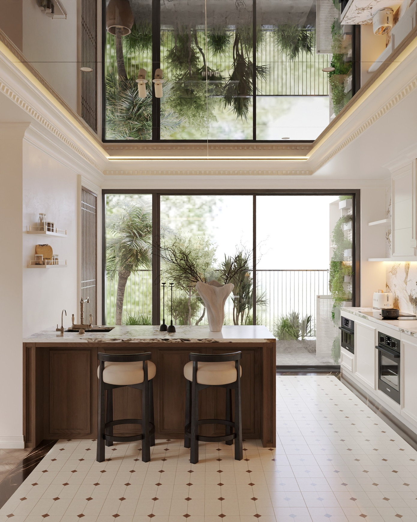 Phong cách chủ đạo của căn hộ là Transitional với không gian tầng 1 sang trọng, tinh tế, tầng 2 thân thiện ấm cúng.