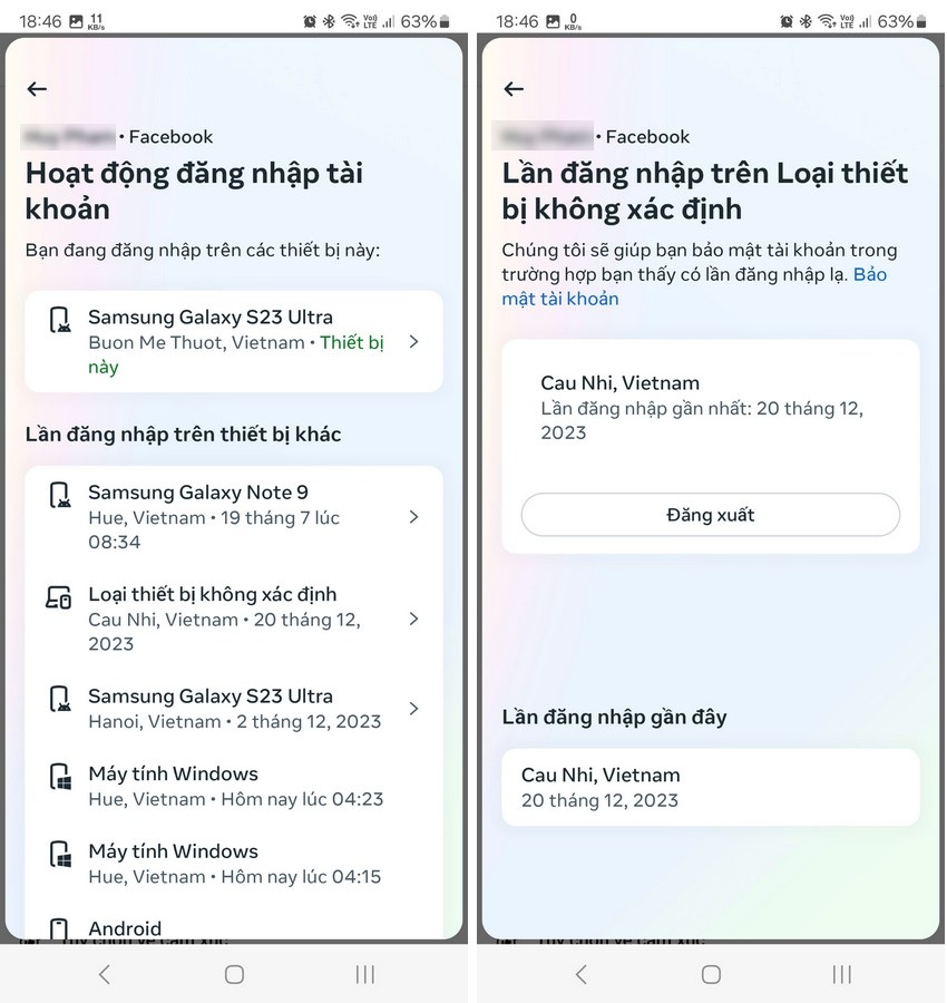 Hãy rà soát thật kỹ, nếu phát hiện bất kỳ tên thiết bị lạ hoắc hay một vị trí địa lý mà bạn chưa từng đặt chân đến, hãy hành động ngay lập tức: Nhấn chọn thiết bị đó và Đăng xuất. Đó là cách nhanh nhất để tống khứ kẻ gian ra khỏi không gian riêng của bạn.