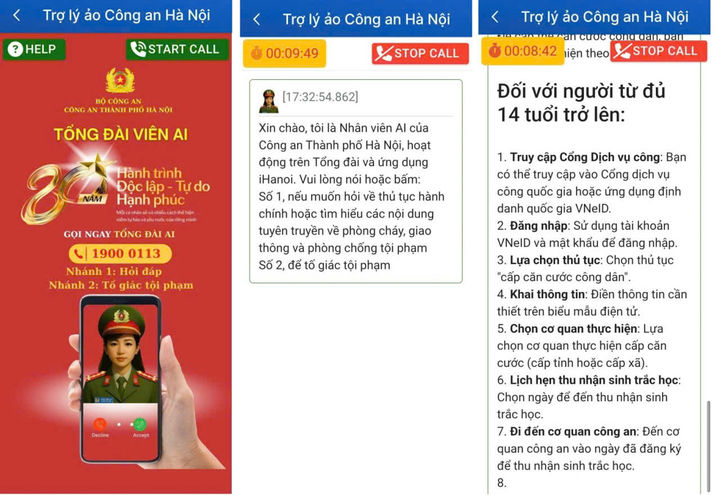 Tổng đài viên AI của Công an TP Hà Nội. (Ảnh: CACC)