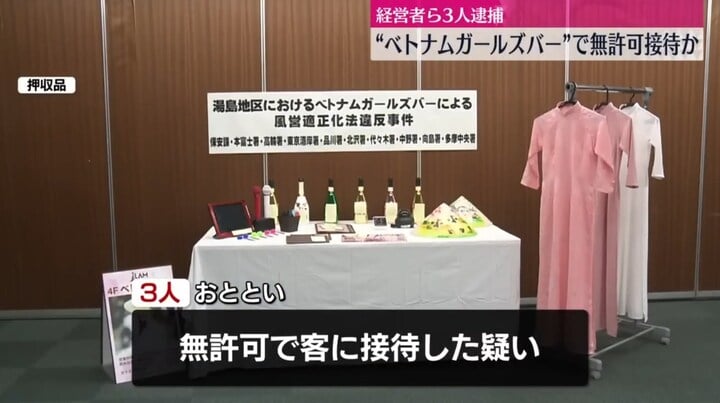 Cảnh sát Tokyo đã công bố việc bắt giữ ba phụ nữ, trong đó có chủ quán bar người Việt ở khu Yushima, quận Bunkyo, vì hoạt động không phép.