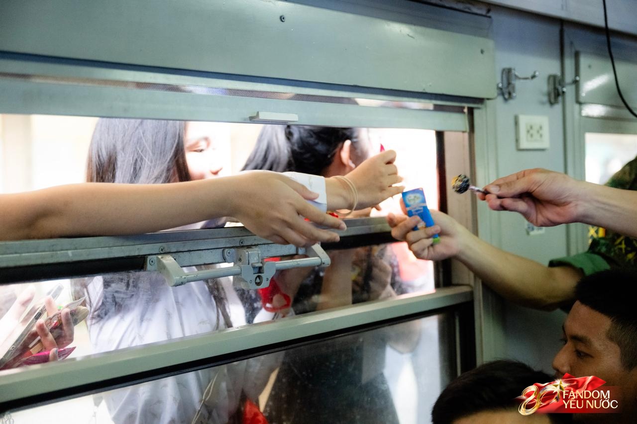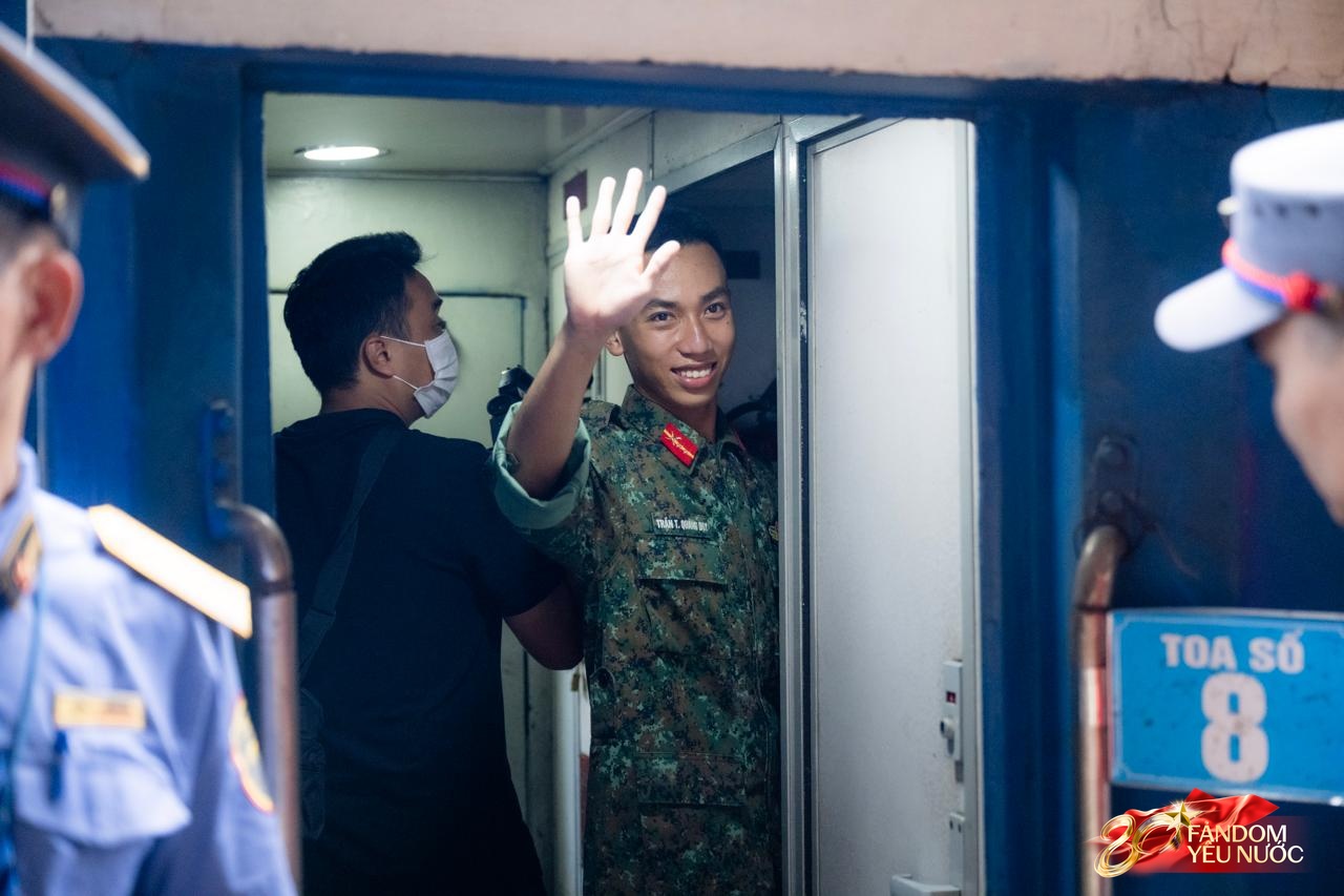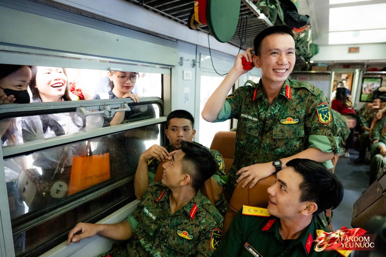 Trước khi tàu lăn bánh, các chiến sĩ vẫn cố nán lại nơi cửa toa, vẫy tay chào tạm biệt trong tiếng reo hò, lời chúc của người dân.