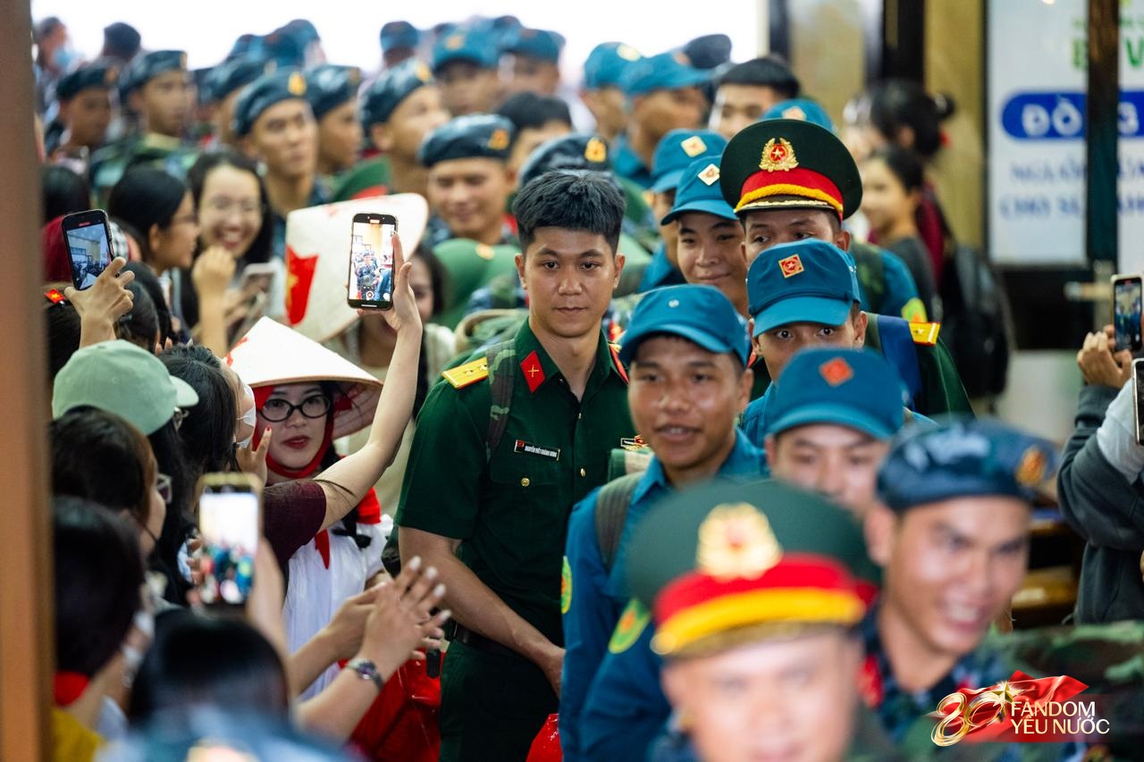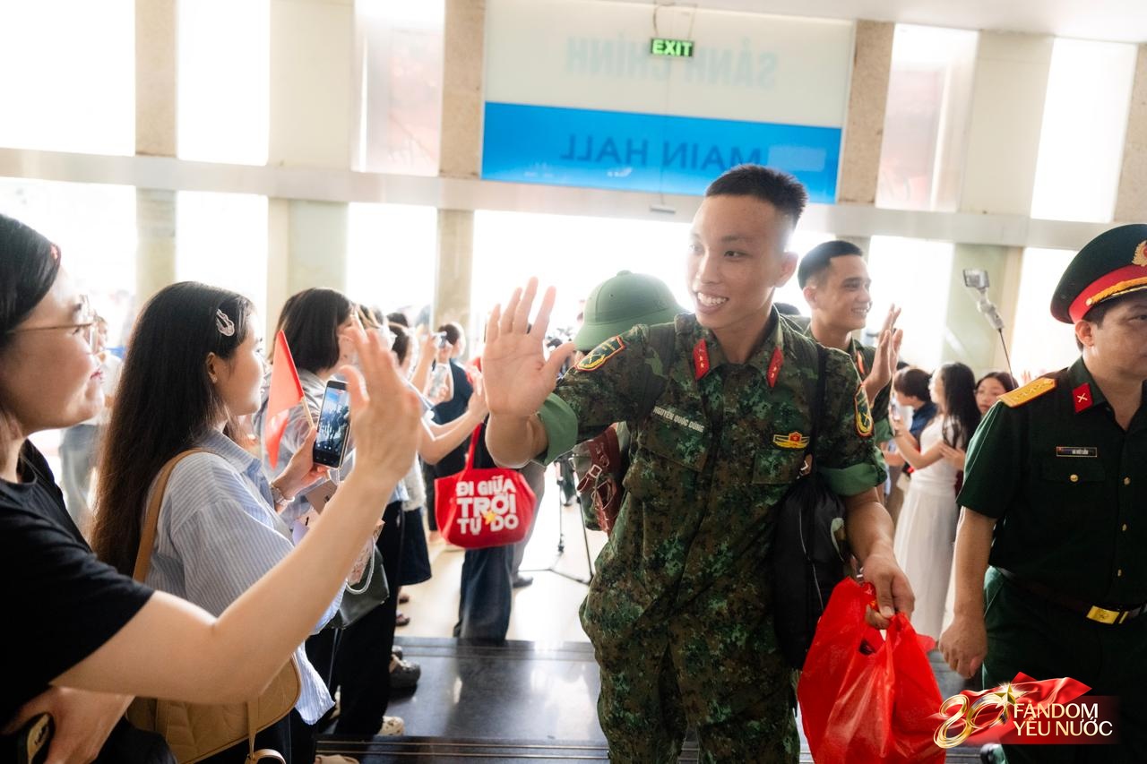 Những cánh tay giơ cao vẫy chào, ánh mắt lưu luyến nơi sân ga khiến các chiến sĩ cố nán lại thêm giây lát để gửi lời tạm biệt người dân Thủ đô