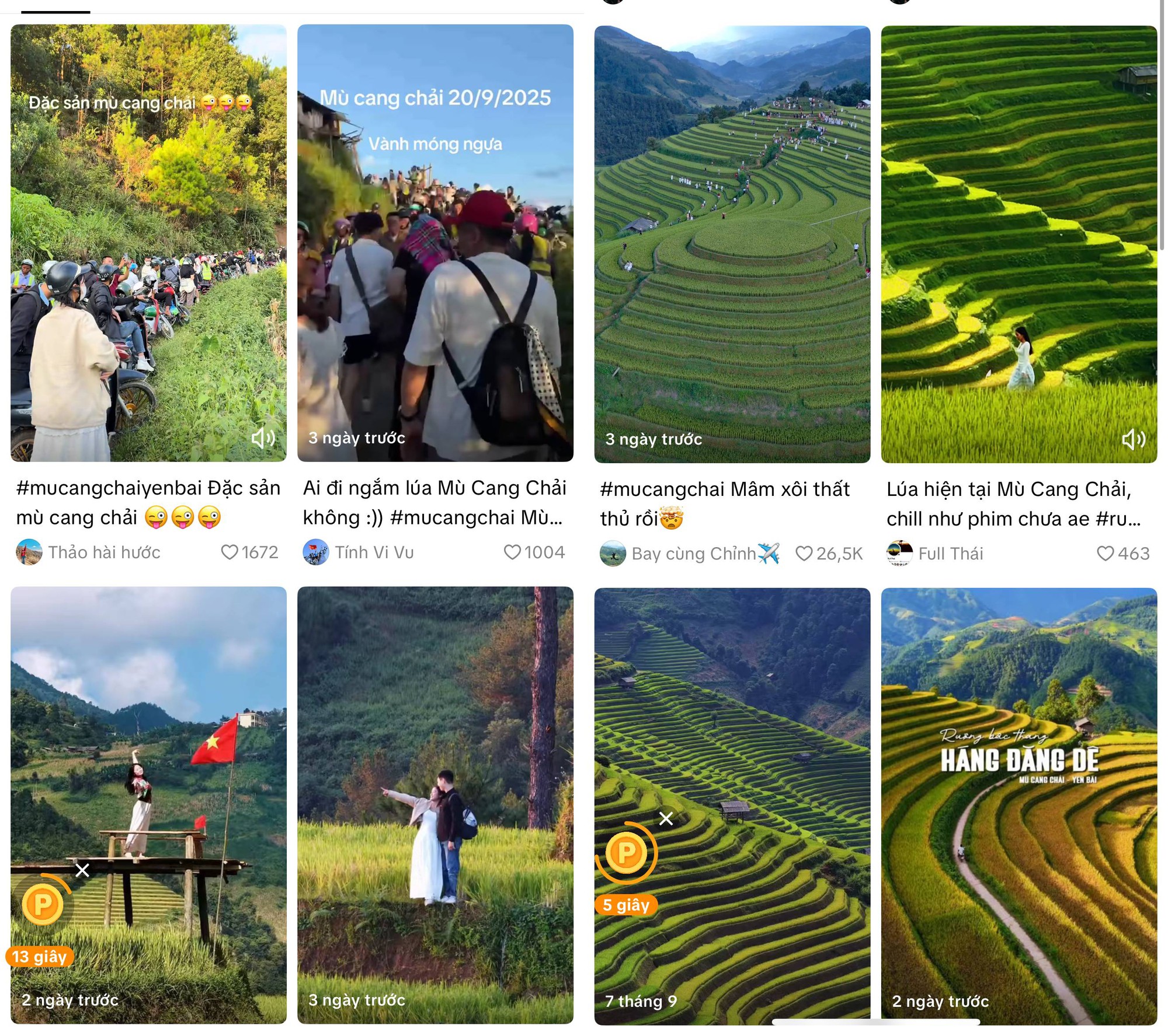 Trên mạng xã hội, hình ảnh dòng người chen chúc trên các lối ruộng bậc thang, hay cảnh xe nối đuôi trên những cung đường đèo về Mù Cang Chải liên tục được chia sẻ, cho thấy sức nóng ngày càng lớn của mùa lúa chín năm nay.