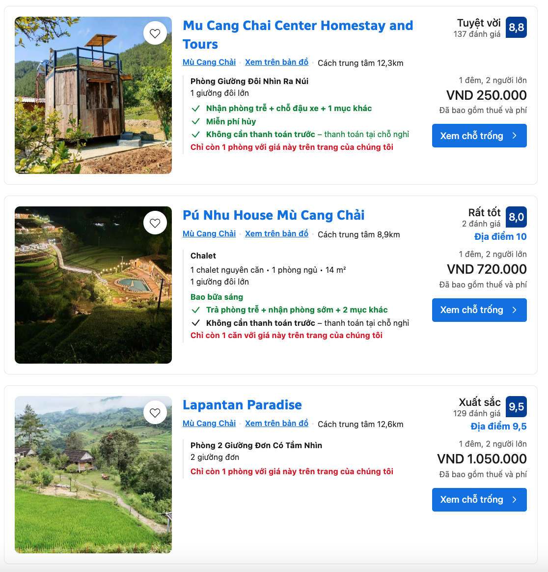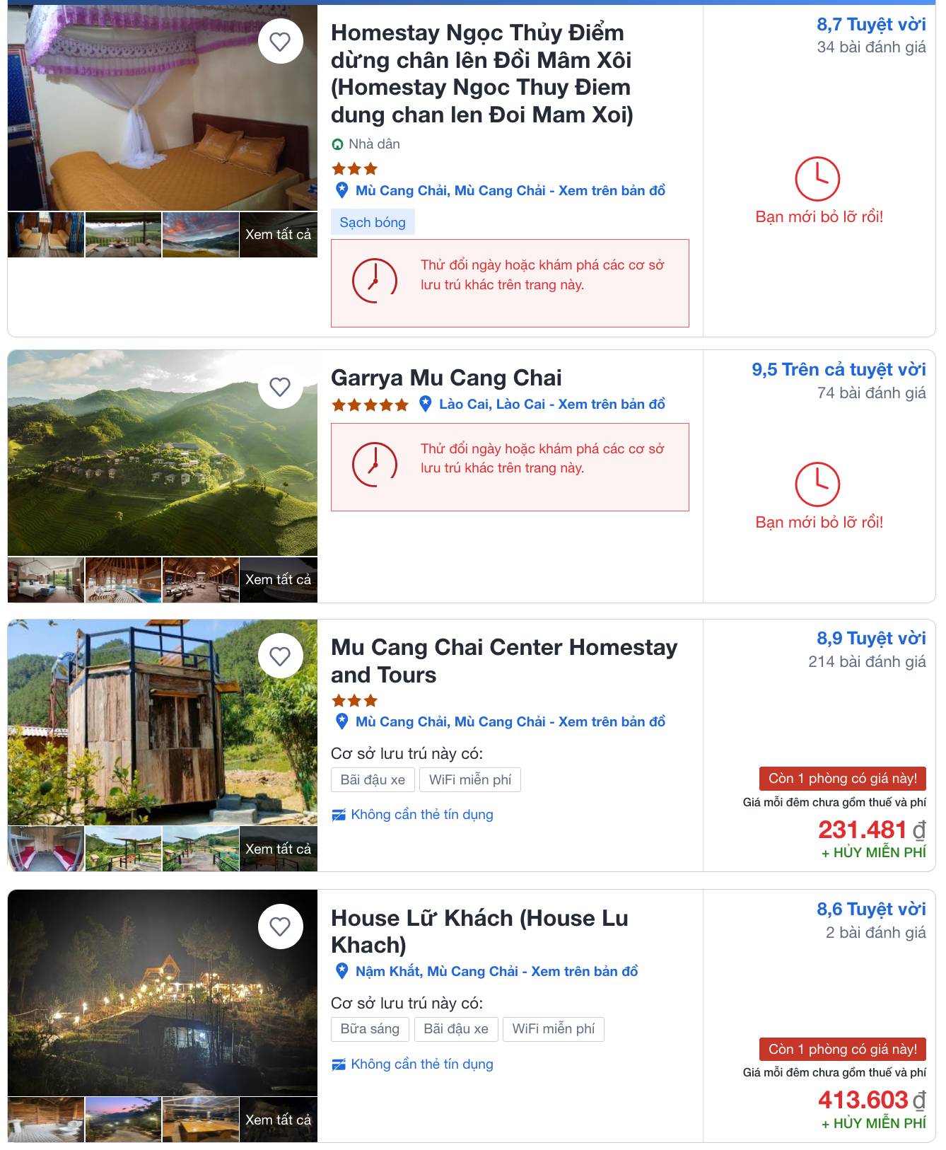 Dự kiến, thời gian tới, lượng du khách đến đây sẽ ngày càng đông hơn. Theo khảo sát trên các nền tảng đặt phòng như Booking, Agoda, thời điểm cuối tuần sắp tới (ngày 28-29/9), nhiều homestay nổi tiếng quanh khu vực đã "cháy phòng", hoặc chỉ còn duy nhất 1 phòng. Những cái tên như Garrya Mù Cang Chải, homestay Ngọc Thủy Điểm, House Lữ Khách hay Mù Cang Chải Center Homestay & Tour... đều gần như kín lịch.