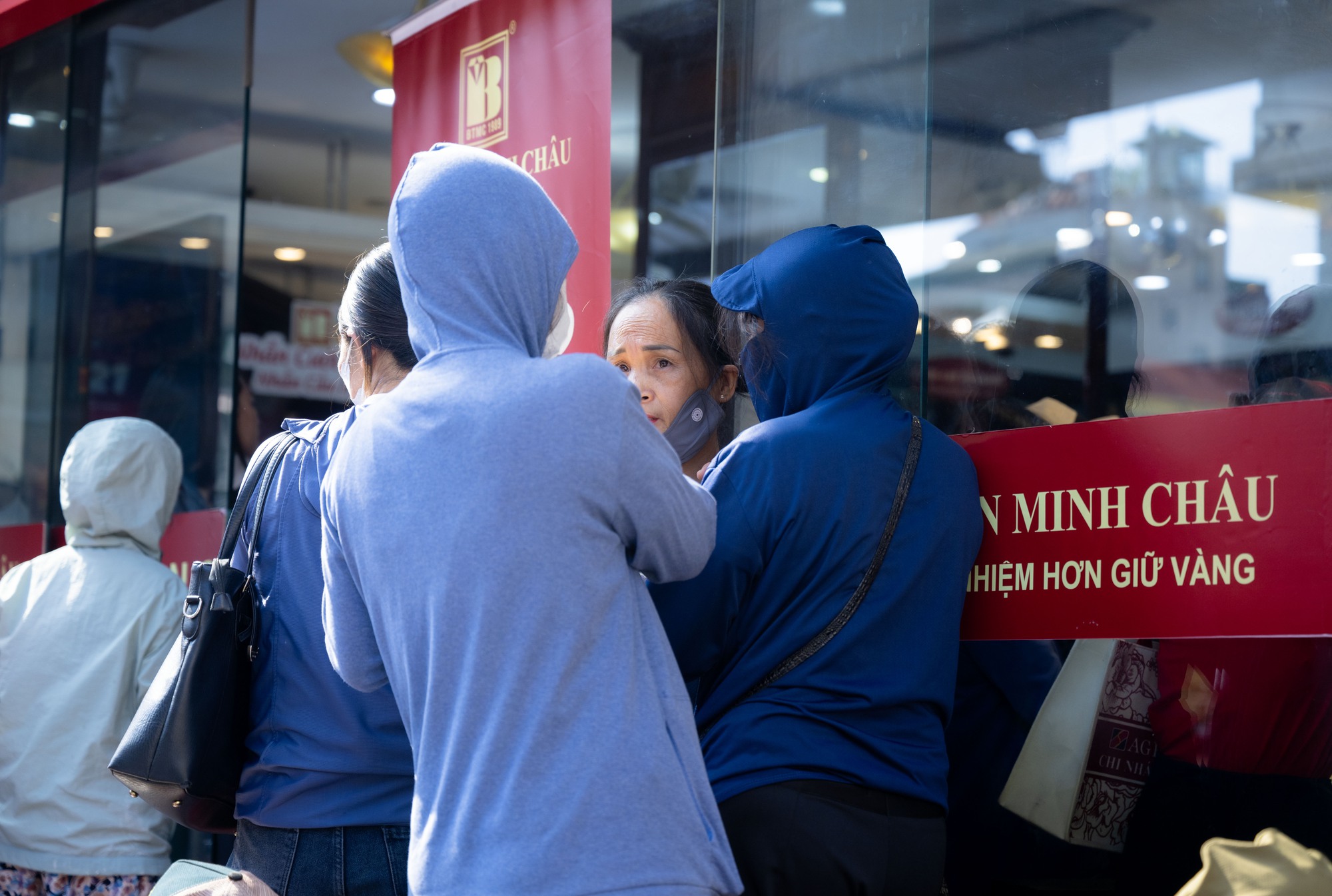 Tại cửa hàng kinh doanh vàng bạc Bảo Tín Minh Châu trên đường Cầu Giấy (Hà Nội), hàng trăm người dân xếp hàng chờ đợi từ sớm để mua vàng, thực hiện các giao dịch liên quan đến vàng