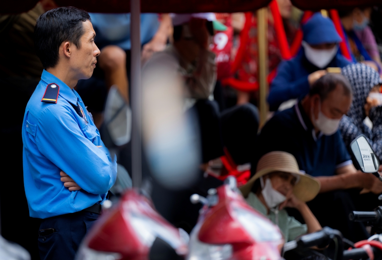 "Chúng tôi phải làm việc liên tục từ sáng sớm để vừa đảm bảo an ninh, vừa giữ trật tự cho người dân xếp hàng. Có người đến từ 4-5 giờ sáng, dù cửa hàng đã treo biển 'Hết vàng' nhưng vẫn kiên nhẫn chờ," người này nói.