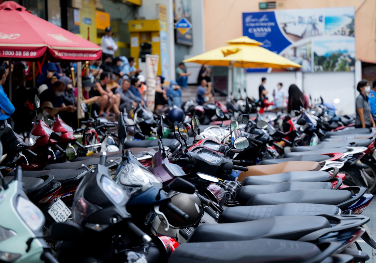 Khu vực để xe trước cửa hàng vàng luôn chật kín phương tiện