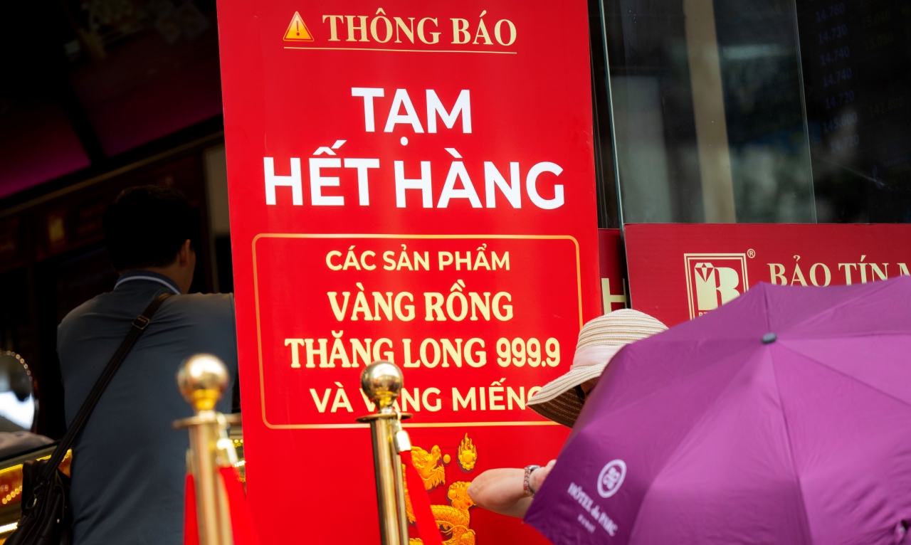Một cửa hàng vàng đã để biển thông báo hết hàng vào trưa ngày 15/10
