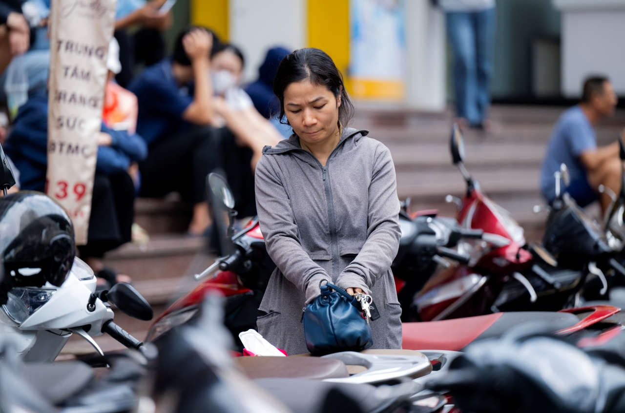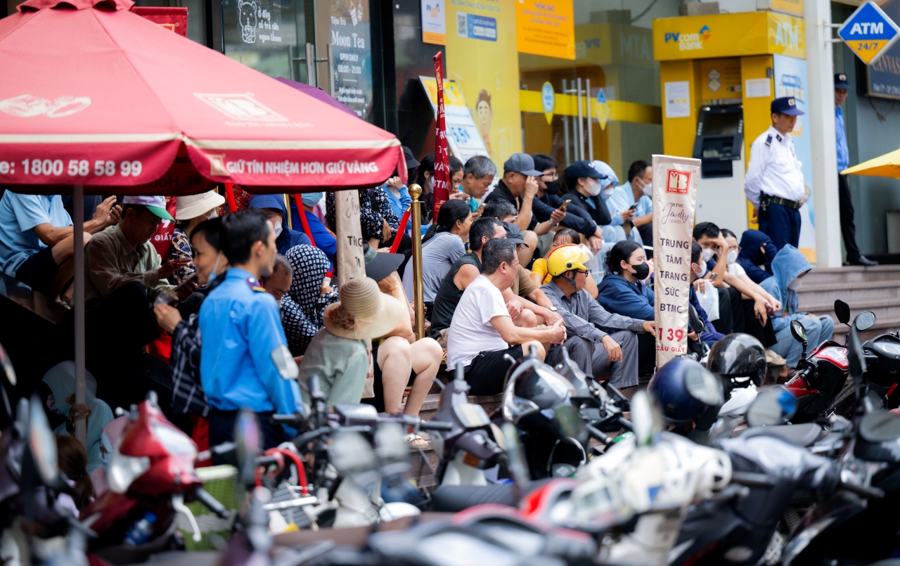 Sau nhiều giờ đứng chờ, không ít người tỏ ra mệt mỏi. Một số người ngồi bệt xuống vỉa hè nghỉ chân, số khác tranh thủ uống nước, ăn tạm chiếc bánh mang theo. Có người vừa quạt, vừa than "đứng từ sáng mà vẫn chưa đến lượt", song vẫn quyết không rời hàng vì sợ mất chỗ.