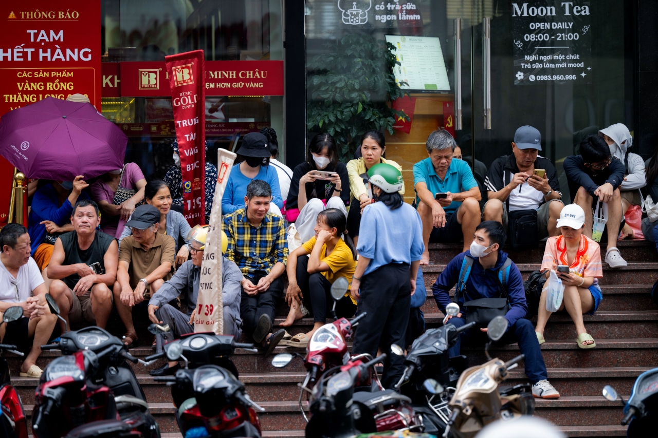 Từ đầu giờ chiều, khu vực trước cửa hàng luôn đông kín người. Nhiều người cho biết họ đã có mặt từ 3–4 giờ sáng để chờ mua vàng, lo ngại giá vàng sẽ tiếp tục tăng trong những ngày tới. Cảnh chen lấn, xô đẩy thỉnh thoảng vẫn xảy ra, song phần lớn người dân cố gắng giữ trật tự, kiên nhẫn đợi đến lượt.