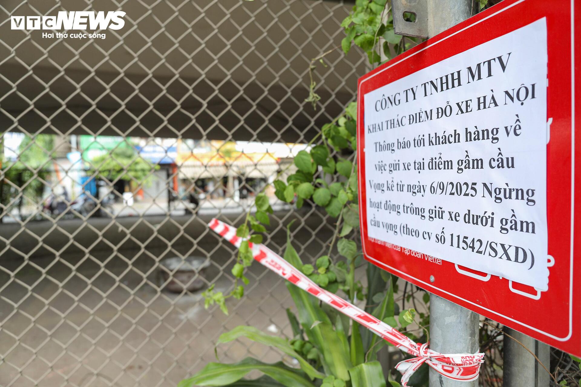 Theo ghi nhận của PV Báo Điện Tử VTC News, chiều 7/9 tại bãi xe gầm Cầu vượt Ngã Tư Vọng (phường Bạch Mai) do Công ty TNHH MTV Khai thác điểm đỗ xe Hà Nội thông báo tới khách hàng đóng cửa bãi gửi xe gầm cầu Vọng kể từ ngày 6/9/2025.