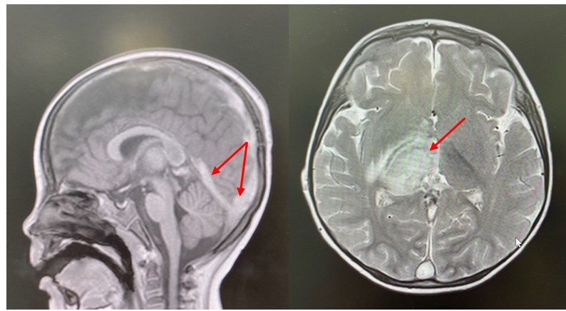 Hình ảnh huyết khối và tổn thương não trên phim MRI não của bệnh nhi - Ảnh: BV Nhi Đồng 1