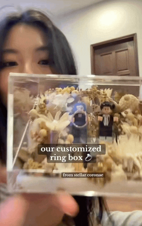 Kết quả là các khối Lego được tích hợp vào thiết kế áo dài cưới của cặp đôi. Điểm chú ý về mặt kỹ thuật là hộp đựng nhẫn cưới do chính chú rể thiết kế và lắp ráp (MOC - My Own Creation).