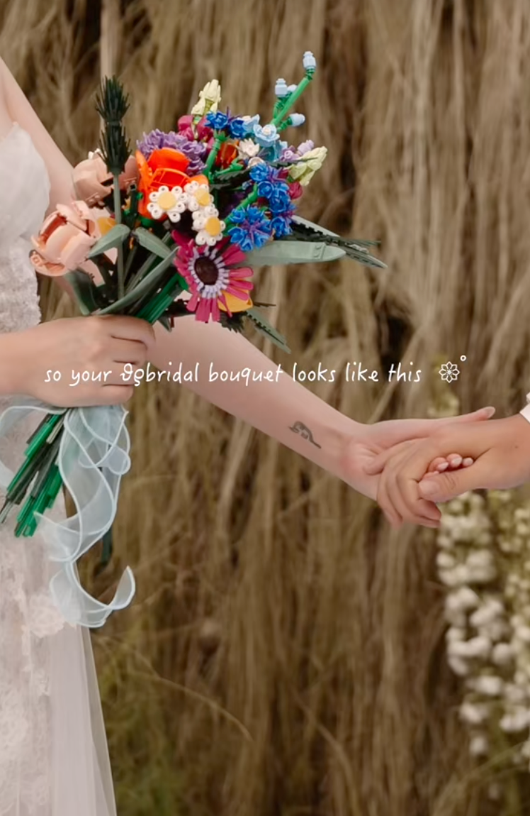 Đến bó hoa cưới cũng được cặp đôi tự tay chuẩn bị, không ngờ nó sống động đến mức không ai đoán được hoa làm từ... lego.
