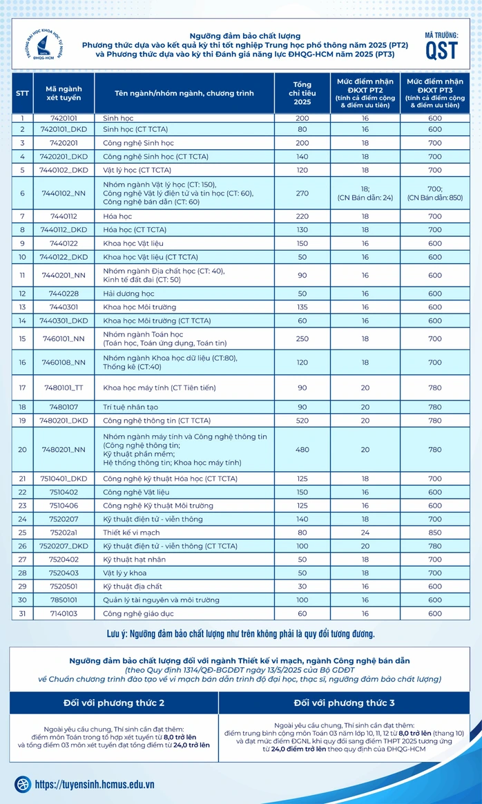 Chi tiết điểm sàn 2025 của Đại học Khoa học Tự nhiên - Đại học Quốc gia TP.HCM.