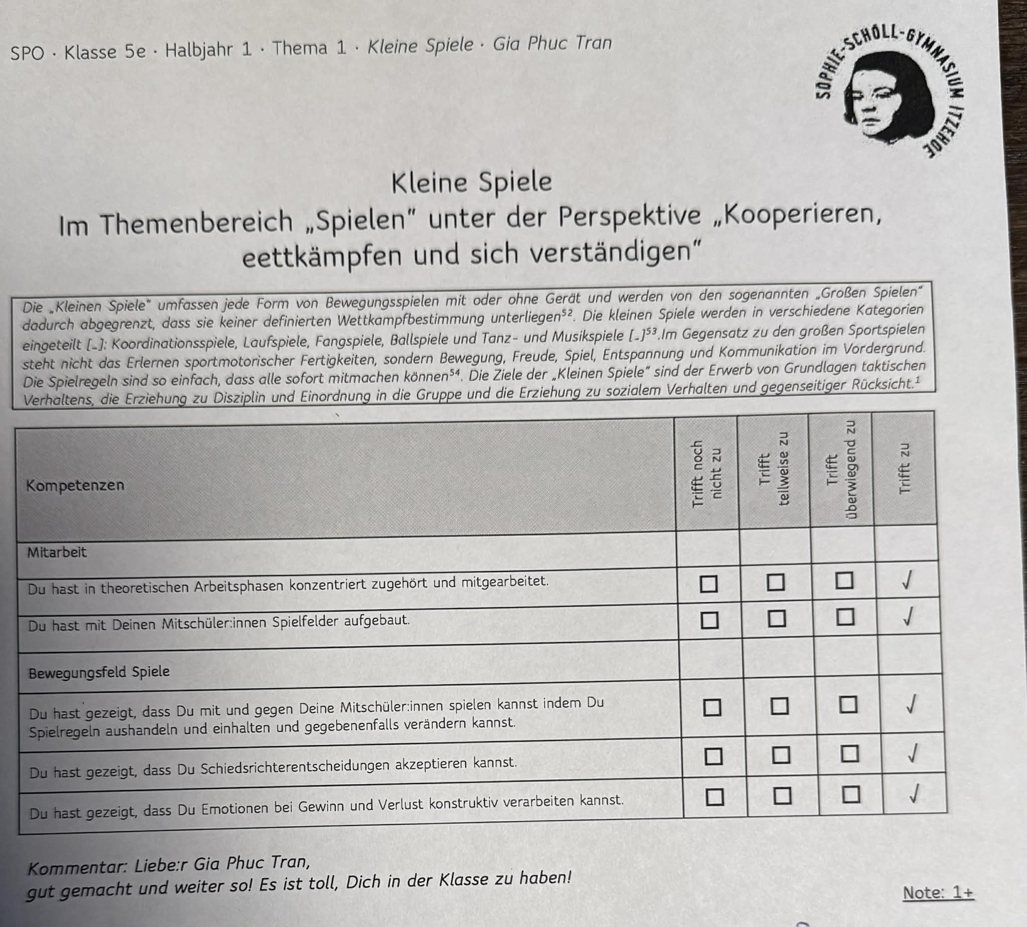 Thực tế, lịch sinh hoạt của Phúc không quá căng thẳng. Chỉ trong giai đoạn đầu chuyển cấp,ở cấp 1 trẻ em học tập trung, vào cấp trung học sẽ phân luồng sang các hệ khác nhau đó là Hauptschule (lao động tay nghề), Realschule (dạy nghề, trung cấp), Gesamtschule (tổng hợp) và Gymnasium (định hướng đại học), vì mọi thứ còn mới mẻ nên con cần khoảng 1, 2 tháng để thích nghi, đặc biệt là với phương pháp tư duy và lập luận hoàn toàn khác so với cấp 1. Ví dụ, ngay bài kiểm tra đầu năm môn tiếng Đức, con đã phải tự viết một câu chuyện cổ tích hoàn chỉnh.