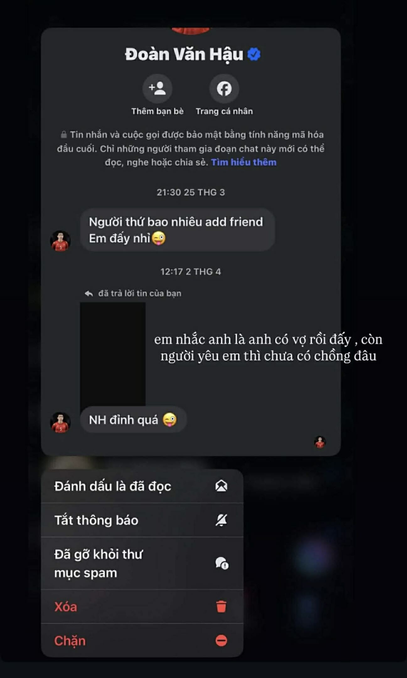 Theo đó, một số tài khoản cho rằng Văn Hậu đã nhắn tin trêu ghẹo một cô gái, nội dung sau đó được cho là đã bị bạn trai của cô chụp lại và đăng tải. Chưa dừng lại, một người khác tiếp tục lên tiếng, cho rằng nam cầu thủ từng nhiều lần “thả thính” mình vào thời điểm cận kề đám cưới, thậm chí còn “dỗi” và hủy kết bạn vì không nhận được phản hồi. Dù gây xôn xao dư luận, toàn bộ những thông tin này đến nay vẫn chỉ mang tính một chiều, chưa có xác nhận chính thức.