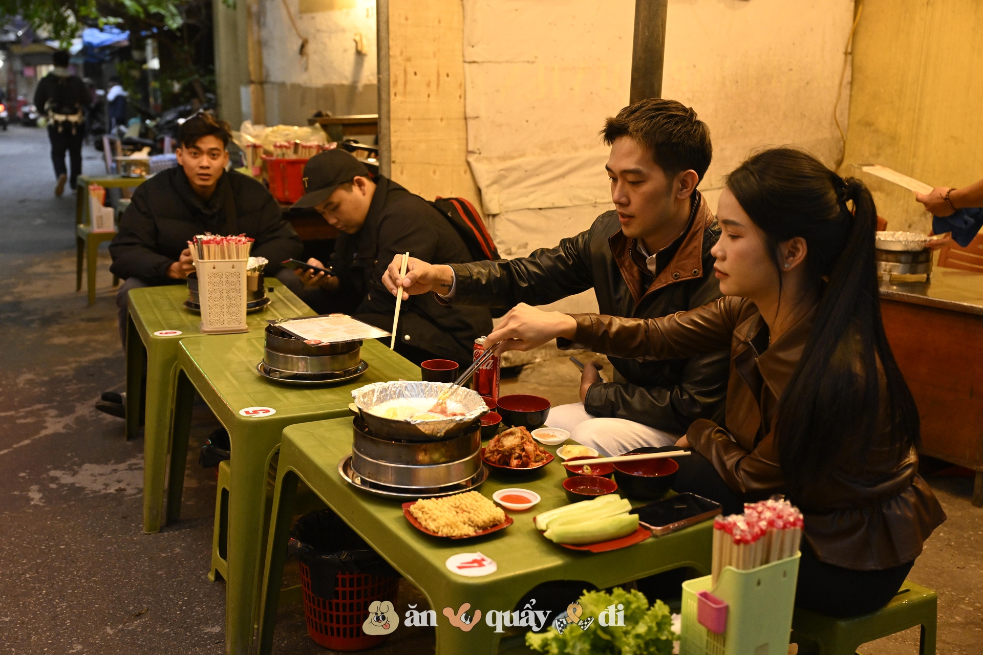 Trước đây, quán nướng này mở cửa từ 18h mỗi ngày, nhưng vài hôm gần đây lượng khách tăng đột biến nên phải mở sớm hơn - từ 17h. Nhiều người không giấu nổi háo hức, vừa đến ăn vừa tranh thủ chụp hình "check-in" cùng "idol 4 chân" của Hà Nội.