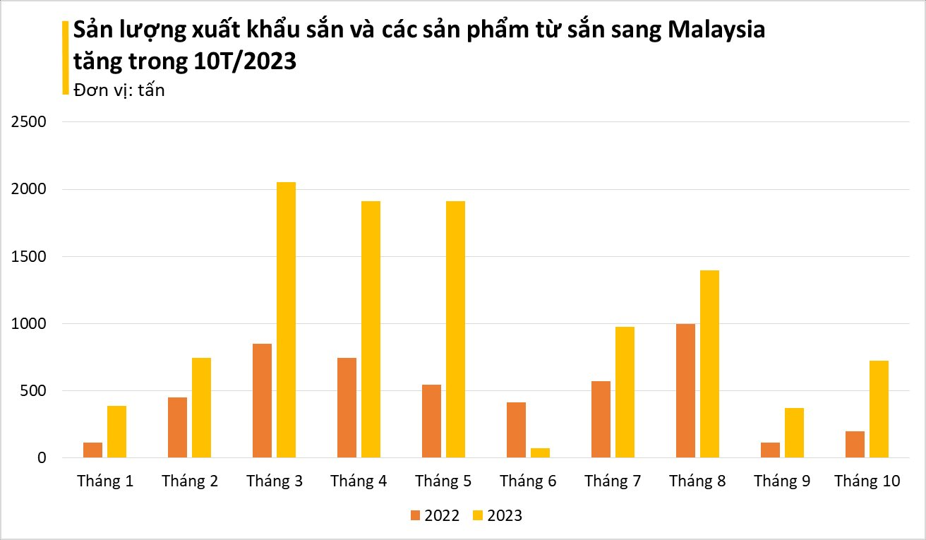 Trong tháng 10, mặc dù lượng sắn xuất khẩu giảm, nhưng xuất khẩu sắn và các sản phẩm từ sắn sang một thị trường vẫn tăng trưởng tốt cả về lượng và trị giá so với cùng kỳ năm 2022. Trong đó, Malaysia đang nổi lên là thị trường tích cực nhập khẩu mặt hàng này của Việt Nam.