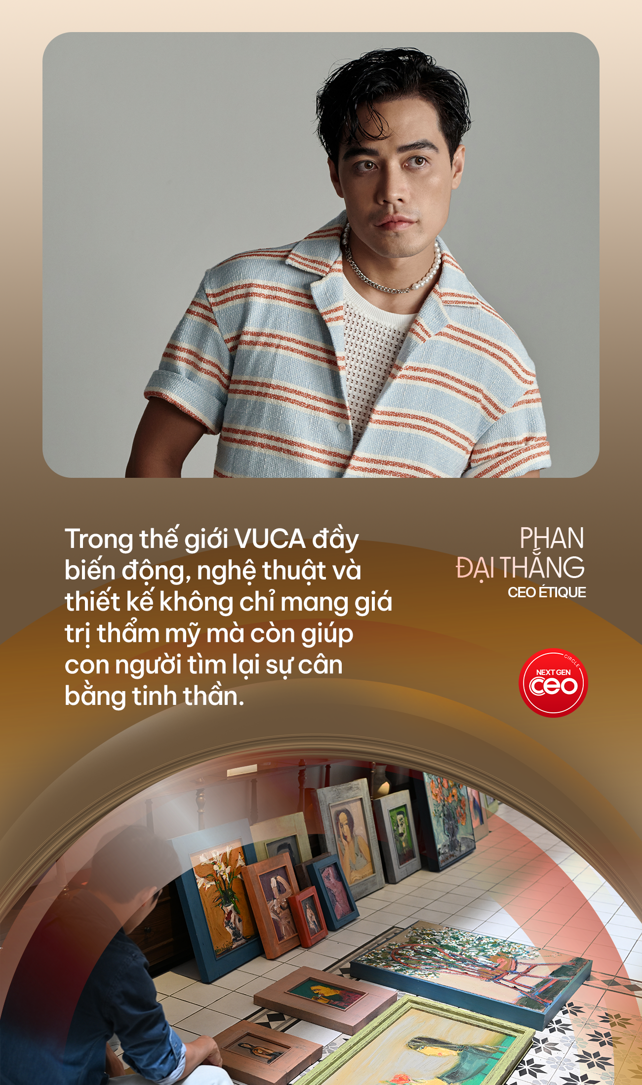 “Trong thế giới VUCA đầy biến động, nghệ thuật và thiết kế không chỉ mang giá trị thẩm mỹ mà còn giúp con người tìm lại sự cân bằng tinh thần”, CEO sinh năm 1989 nhận định.