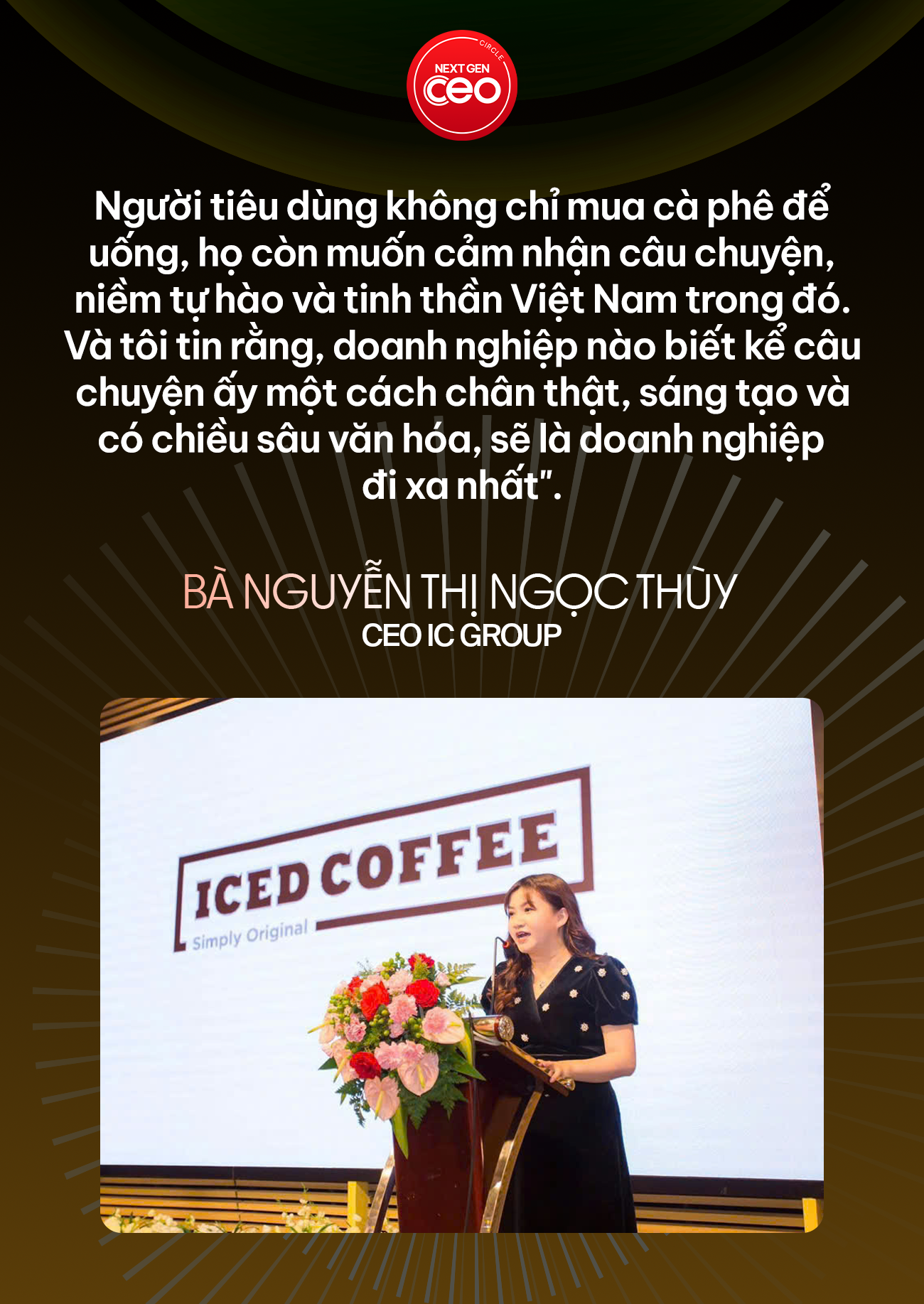 Chia sẻ với BTC chương trình NextGen CEO năm 2025, bà Nguyễn Thị Ngọc Thùy cho biết, lý do đến với ngành cà phê không chỉ vì kinh doanh, mà vì tình yêu với hương vị và văn hóa Việt. Sau nhiều năm làm việc và chứng kiến hành trình của IC Group, bà nhận ra rằng, trong 3–5 năm tới, sự tăng trưởng của ngành cà phê Việt Nam sẽ không chỉ đến từ sản phẩm, mà đến từ giá trị thương hiệu và trải nghiệm con người – cả khách hàng lẫn đội ngũ phía sau mỗi ly cà phê.