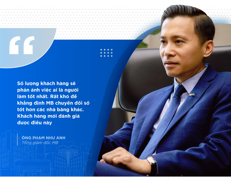 - Không chỉ MB, mà tất cả các ngân hàng trong hệ thống đều đang tham gia vào cuộc đua chuyển đổi số. Vậy nhà băng làm thế nào để tạo lợi thế cạnh tranh cho mình?