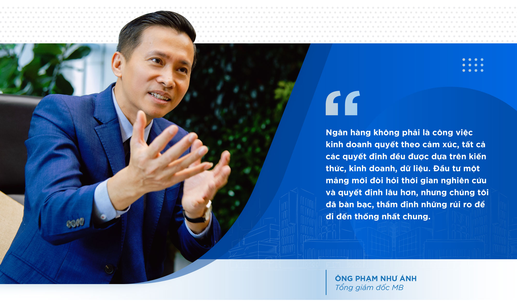Khi đã có đầy đủ thông tin và cơ sở, mọi người đều đồng lòng với quyết định của chúng tôi. Ngân hàng không phải là công việc kinh doanh dựa vào cảm xúc, mà mọi quyết định đều được đưa ra dựa trên kiến thức, dữ liệu và kinh nghiệm thực tiễn. Đầu tư vào một lĩnh vực mới đòi hỏi thời gian nghiên cứu và quyết định thận trọng hơn, nhưng chúng tôi luôn thảo luận, thẩm định các rủi ro để đi đến sự đồng thuận cao nhất.
