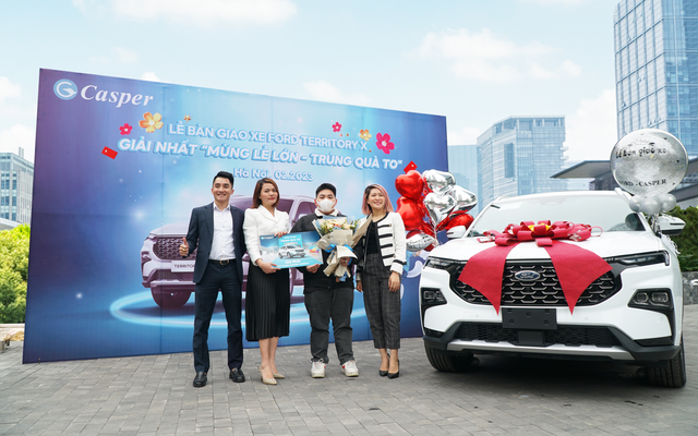 Casper Việt Nam vừa tổ chức trao giải nhất - ô tô Ford Territory Titanium – phiên bản cao nhất, trị giá gần 1 tỷ đồng cho khách hàng may mắn của chương trình cào thẻ trúng thưởng "Mừng lễ lớn, trúng quà to". Sự kiện được diễn ra tại trụ sở Casper Việt Nam tại Hà Nội.
