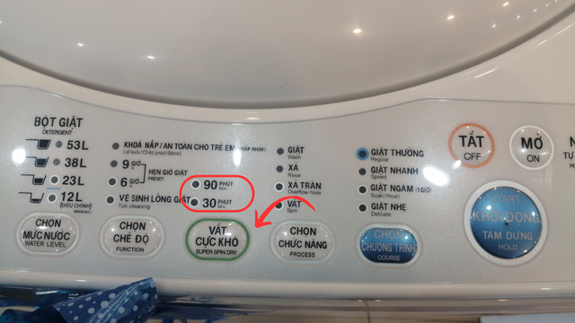 Tuy nhiên trên thực tế, ngay trên chiếc máy giặt quen thuộc, cũng có những nút nhỏ thể hiện chế độ, giúp quần áo khô nhanh hơn, tiết kiệm thời gian phơi quần áo nhưng không phải ai cũng biết. Đó là tính năng Vắt cực khô và Sấy gió.