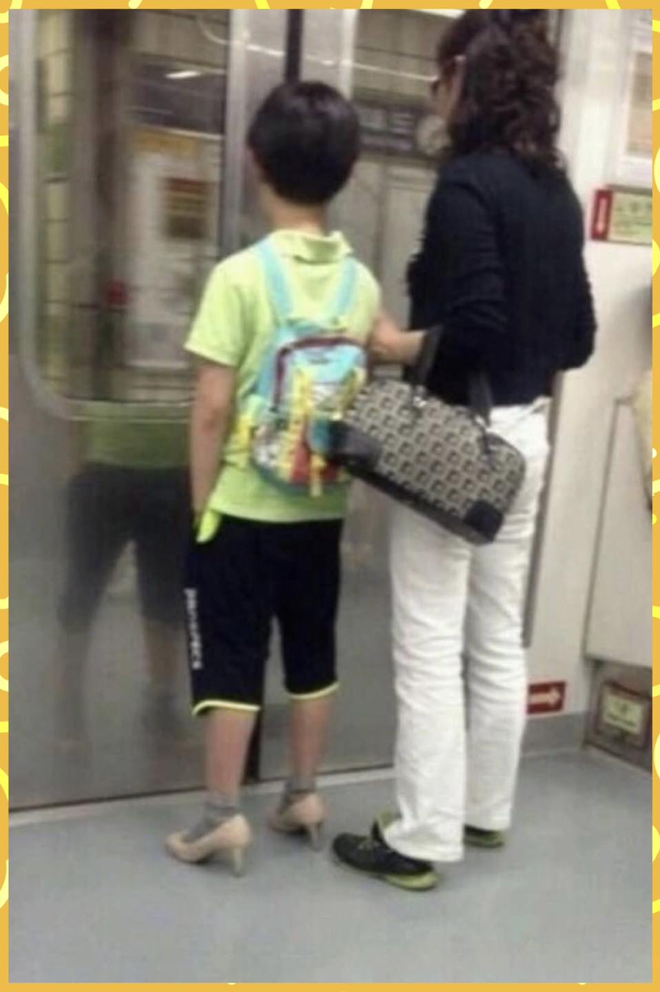 1 bức ảnh chụp lén 2 mẹ con Châu Á trong khoang tàu điện ngầm được trang Brightside chia sẻ thu hút sự chú ý. Trong ảnh, một cậu bé đứng cạnh mẹ, dáng người nhỏ nhắn, đeo balo học sinh. Điều khiến ai cũng sững lại không phải là khuôn mặt bởi cả hai đều quay lưng mà là… đôi giày. Cậu bé mang một đôi giày cao gót nữ, còn người mẹ đứng bên cạnh lại đi giày bệt. Chi tiết “lạc quẻ” ấy ban đầu khiến nhiều người bật cười vì sự ngộ nghĩnh. Nhưng chỉ vài giây sau, cảm giác buồn cười nhường chỗ cho một sự ấm áp rất khó gọi tên.