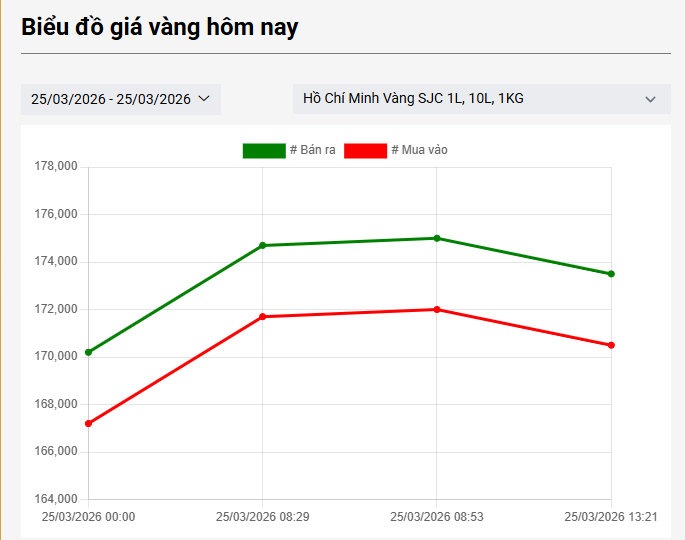 Đầu giờ sáng 25/3, giá vàng trong nước tiếp tục tăng mạnh, vượt xa mốc 170 triệu đồng/lượng trong bối cảnh giá vàng thế giới vượt 4.500 USD/ounce.