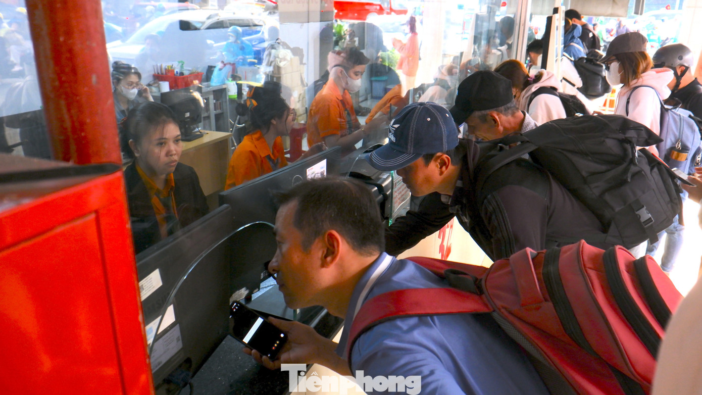 Hành khách tay xách nách mang, lỉnh kỉnh đồ đạc, hành lý vào bến mua vé xe về quê nghỉ Tết Dương lịch 2026.