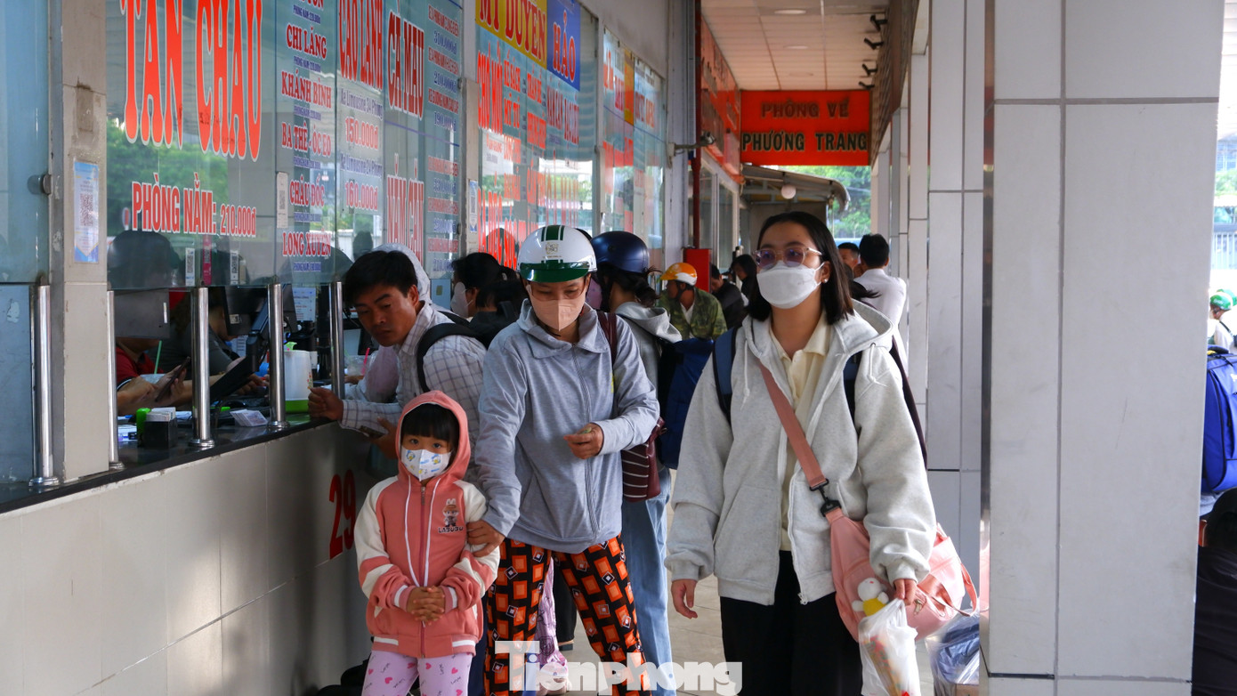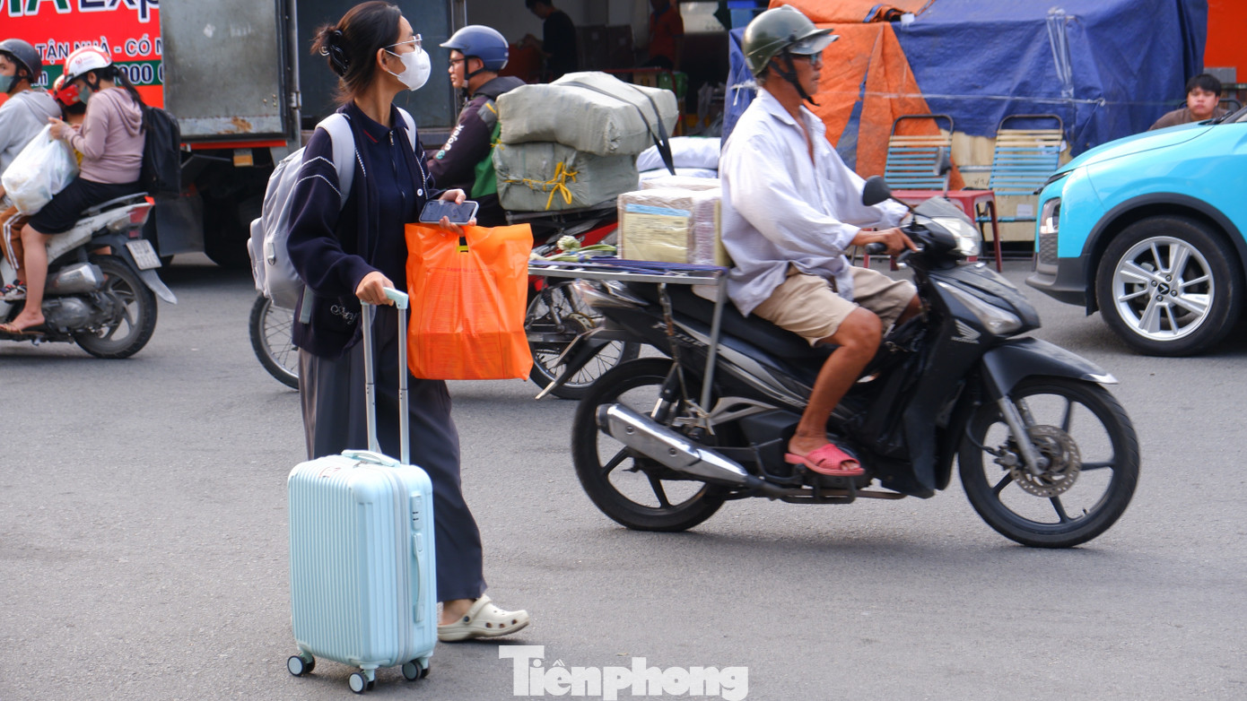 Ghi nhận của phóng viên cho thấy, từ khoảng 16h30 cùng ngày, khu vực Bến xe Miền Tây (phường An Lạc, TPHCM) đã trở nên nhộn nhịp. Hành khách tay xách nách mang balô, vali nối nhau vào bến mua vé, chờ lên xe về các tỉnh miền Tây Nam bộ.