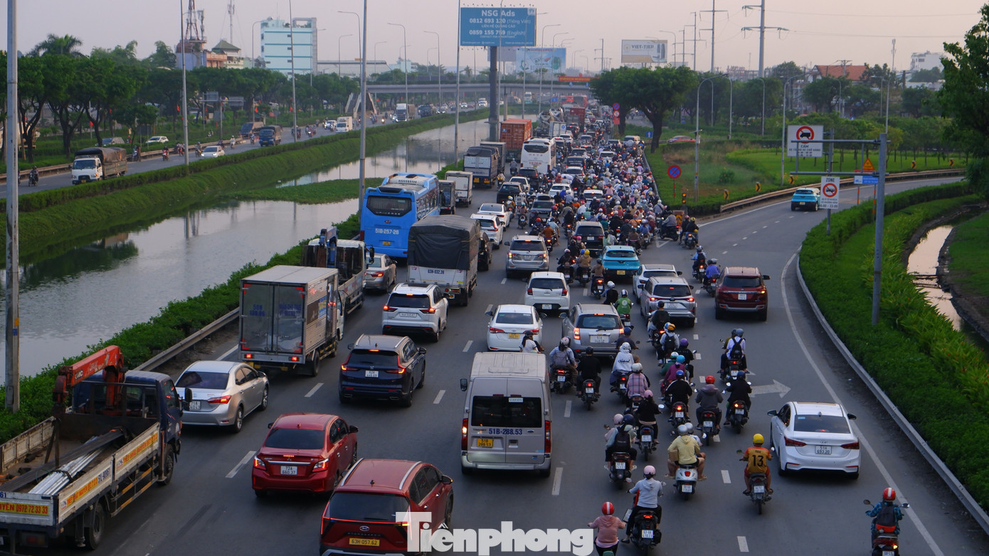 Cùng thời điểm, giao thông tại các cửa ngõ TPHCM bắt đầu căng thẳng. Trên trục Kinh Dương Vương - vòng xoay An Lạc - đường Lê Khả Phiêu (quốc lộ 1), dòng xe nối dài, di chuyển chậm. Đến khoảng 17h30, lượng phương tiện theo hướng từ TPHCM về các tỉnh miền Tây tiếp tục tăng.