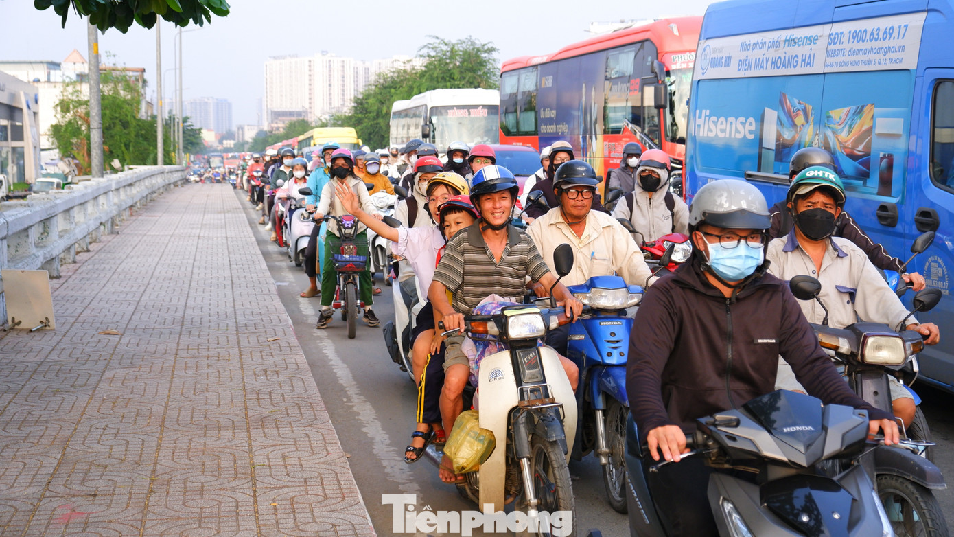 Cửa ngõ phía Tây TPHCM đông kín phương tiện theo hướng từ TPHCM đi các tỉnh, thành miền Tây Nam bộ.