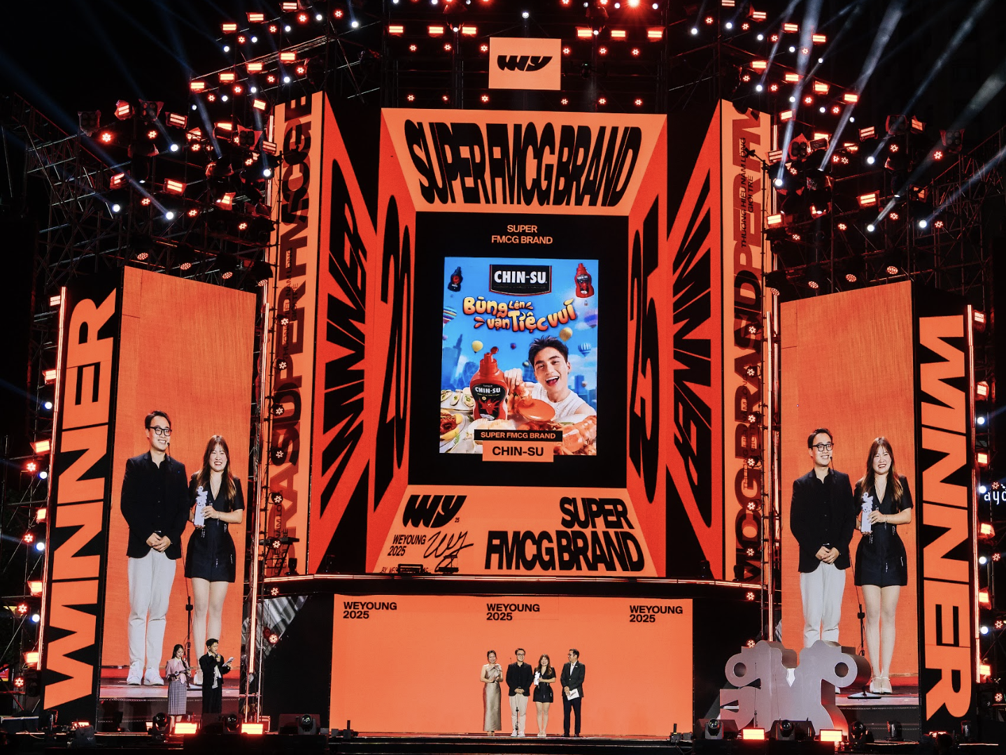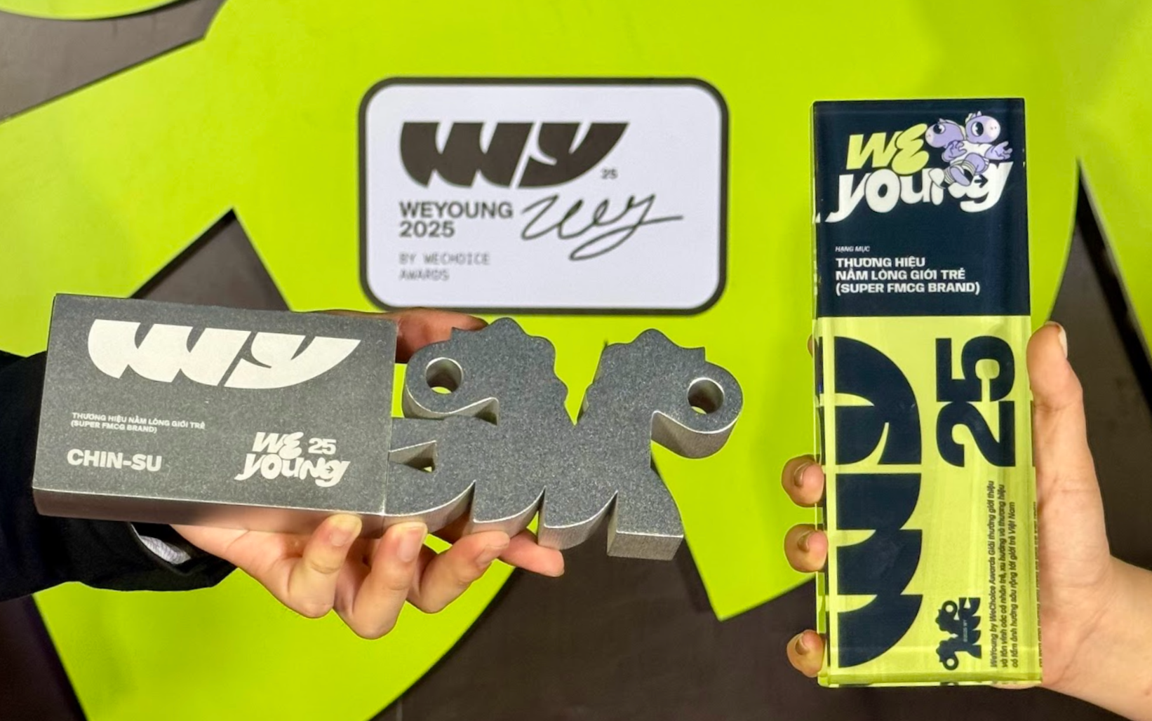 Tại đêm Gala WeYoung 2025 diễn ra tại Phố đi bộ Nguyễn Huệ, giải thưởng “Super FMCG Brand - Thương hiệu nằm lòng giới trẻ” đã chính thức được trao cho CHIN-SU.