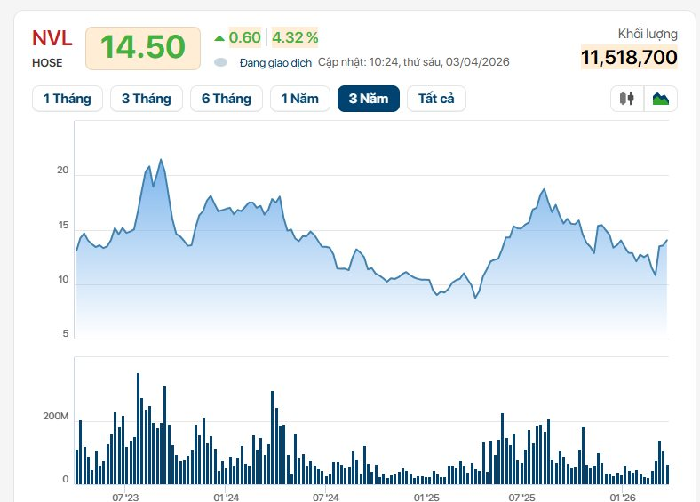 Trên thị trường, chốt phiên 2/4, thị giá NVL đạt 13.900 đồng/cp.