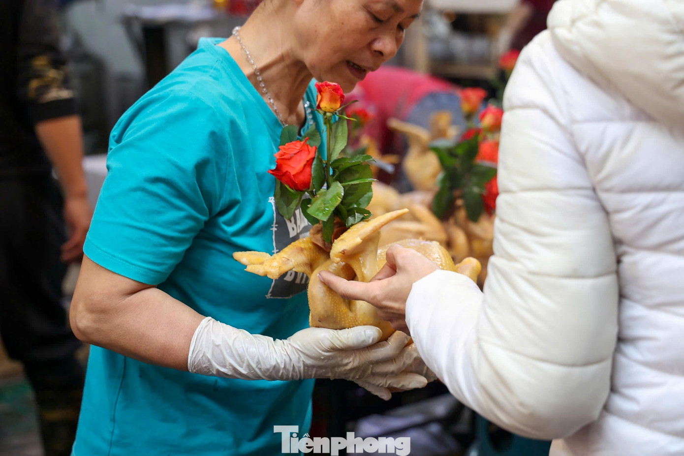 Thịt đông, món đặc trưng ngày Tết miền Bắc, được đổ đầy khay inox. Giá bán dao động 220.000–250.000 đồng mỗi kg, tăng nhẹ so với ngày thường. Giò lụa, chả quế xếp chồng cao sau quầy kính. Mỗi kg giò có giá từ 320.000 đến 380.000 đồng. Nhiều khách mua liền hai, ba cân để biếu hoặc dùng trong nhiều ngày Tết. Các cửa hàng nhận làm trọn gói mâm cỗ 6–8 món, gồm canh măng, bóng bì, cá kho, nem rán, giò xào… Giá một mâm từ 1,5 đến 3 triệu đồng tùy khối lượng.