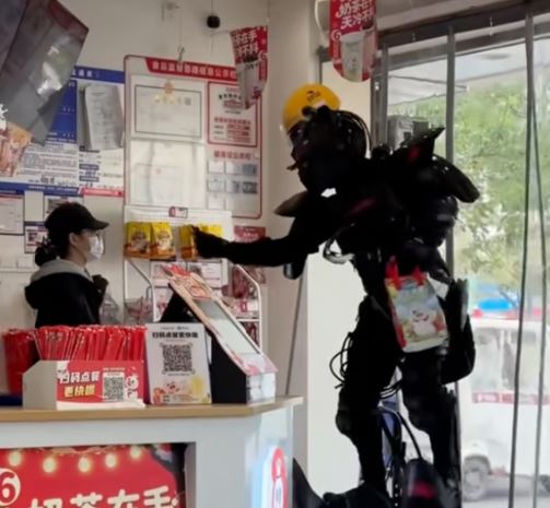 Video gây bão là cảnh Zhou trong bộ giáp cơ khí cồng kềnh điềm nhiên đẩy cửa bước vào một quán trà sữa, nhận ly đồ uống rồi xoay người rời đi trong sự kinh ngạc của mọi người xung quanh. Không ít người đã đứng bật dậy, mắt tròn xoe, miệng lẩm bẩm: “Đây là… thật sao?”.