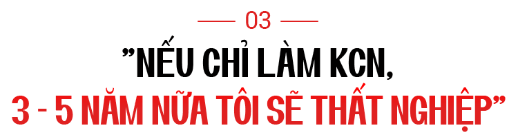 Tuy nhiên, ông nhìn thấy một "ngưỡng" giới hạn đang đến gần. "Mảng khu công nghiệp (KCN) tôi đang làm, quỹ đất không thể mở rộng mãi được. Theo quy hoạch mới, dư địa phát triển không còn nhiều, có lẽ chỉ 3-5 năm nữa là tôi thất nghiệp."