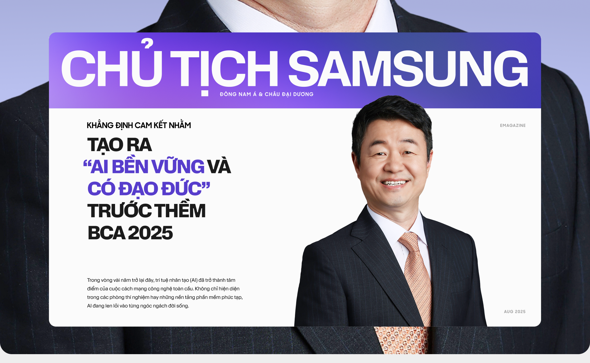 Trong bối cảnh đó, Samsung, một trong những tập đoàn công nghệ hàng đầu thế giới đang đặt ra tiêu chuẩn mới cho cách tiếp cận AI. Không chỉ chạy đua về tính năng hay hiệu năng, hãng nhấn mạnh nguyên tắc “Công bằng – Minh bạch – Trách nhiệm” làm kim chỉ nam cho mọi ứng dụng AI. Điều này đặc biệt được khẳng định bởi ông CU Kim, Chủ tịch kiêm Tổng Giám đốc Samsung khu vực Đông Nam Á & Châu Đại Dương, trong buổi trò chuyện với chúng tôi ngay trước thềm Better Choice Awards 2025 (BCA2025).