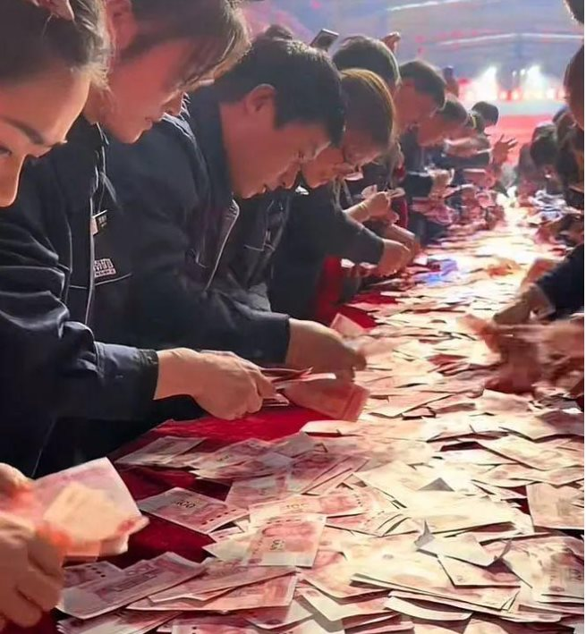 Đáng chú ý, bộ phận kinh doanh là nhóm nhận thưởng cao nhất, với một số cá nhân nhận hơn 5 triệu NDT. Buổi họp cũng tiếp tục duy trì “truyền thống” đặc biệt – cuộc thi đếm tiền mặt – nơi nhân viên được nhận số tiền họ đếm được trong khoảng thời gian giới hạn.