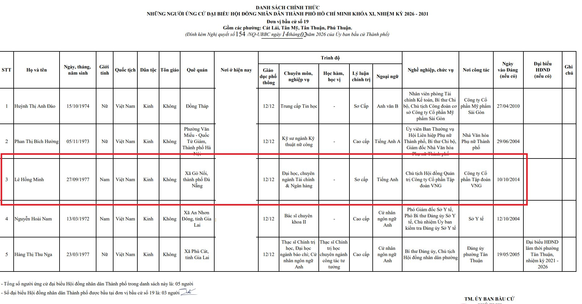 Chủ tịch VNG Lê Hồng Minh là ứng viên cho đại biểu HĐND TPHCM nhiệm kỳ 2026 - 2031