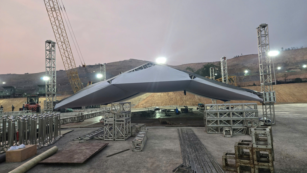 Nhà bạt phục vụ lễ khởi công đang được khẩn trương lắp đặt (nguồn ảnh: Báo Quảng Ninh).